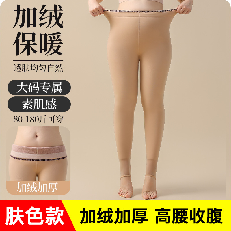 Shuiguang 양말 플러스 사이즈 200kg 검은 실크 다리 유물 높은 허리 가짜 고기 밟는 바지 검은 피부 기모 레깅스스토어 가기