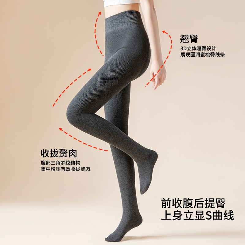 350g 면 세로 줄무늬 레깅스 팬티스타킹 겨울용 따뜻한 레깅스 다리 슬림 및 엉덩이 리프팅 효과