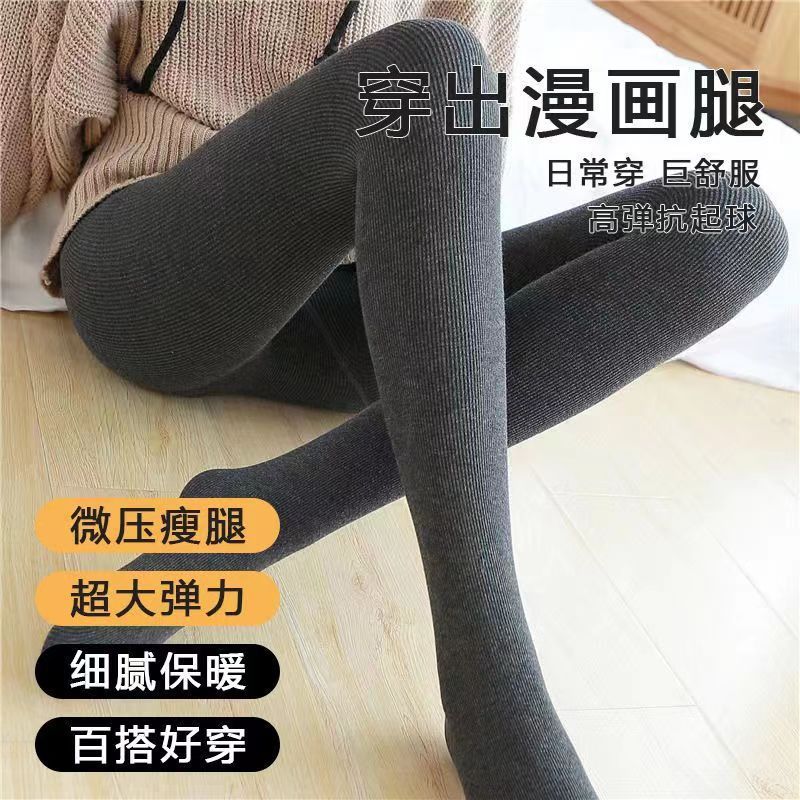 350g 면 세로 줄무늬 레깅스 팬티스타킹 겨울용 따뜻한 레깅스 다리 슬림 및 엉덩이 리프팅 효과스토어 가기