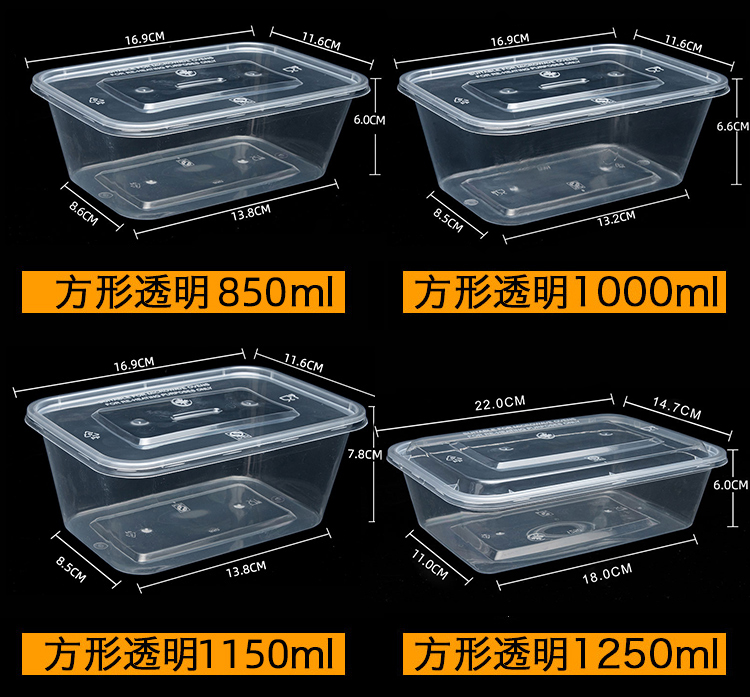 직사각형 1000ML 일회용 도시락 패스트 푸드 점심 수프 그릇 포장 상자 우표 두꺼운 투명 테이크 아웃 마오렌