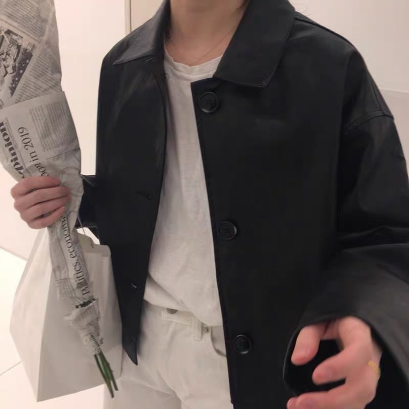 가을 2024 새로운 복고풍 잘 생긴 오토바이 간단한 느슨한 짧은 재킷 모조 가죽 여성을위한 모든 경기 재킷