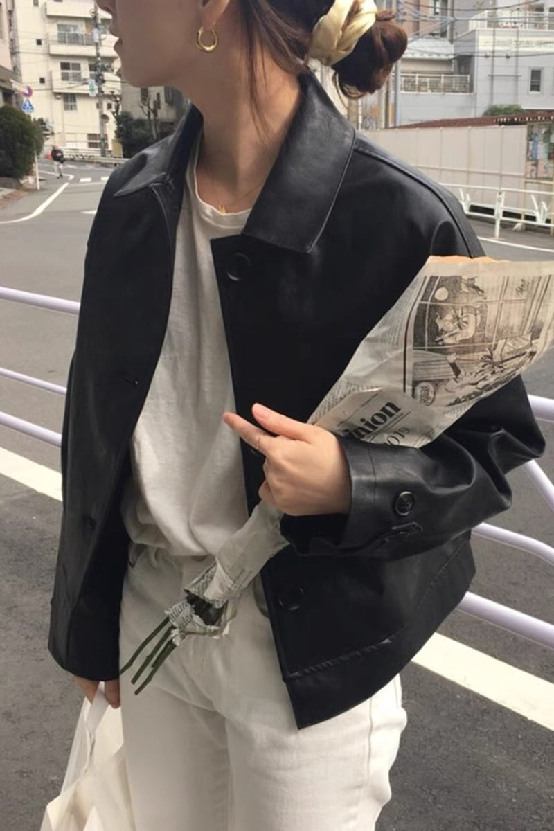 가을 2024 새로운 복고풍 잘 생긴 오토바이 간단한 느슨한 짧은 재킷 모조 가죽 여성을위한 모든 경기 재킷스토어 가기