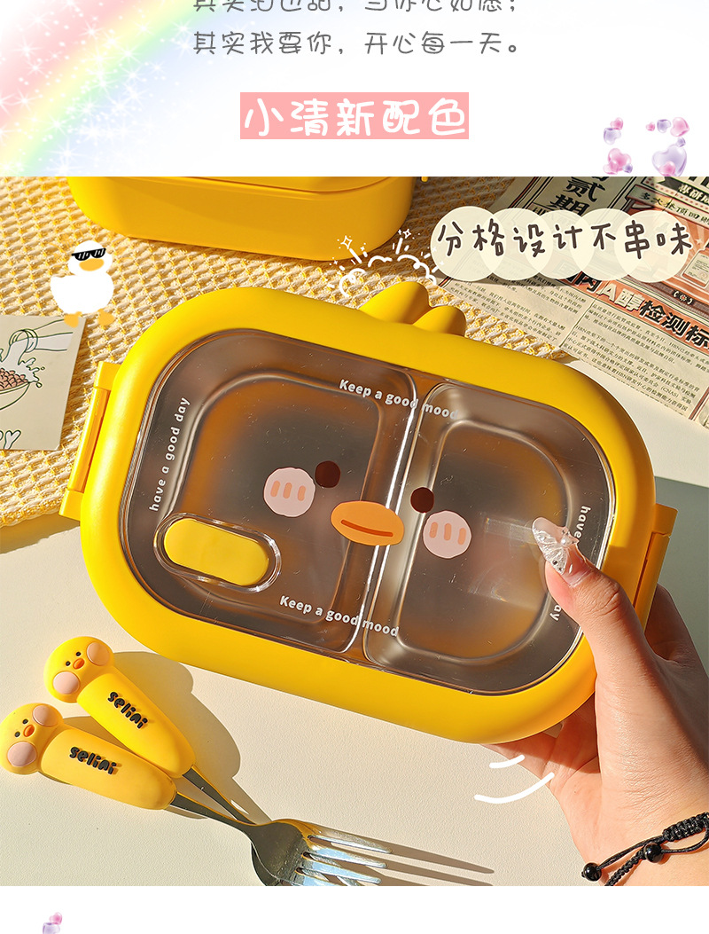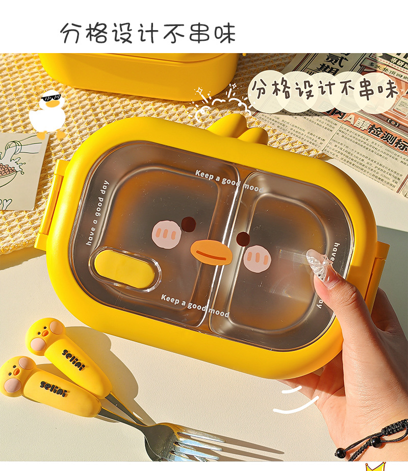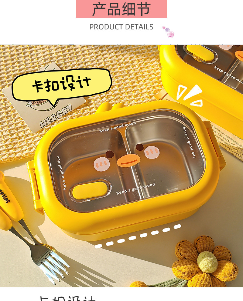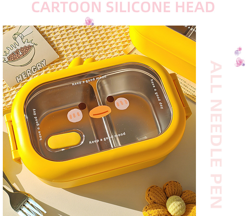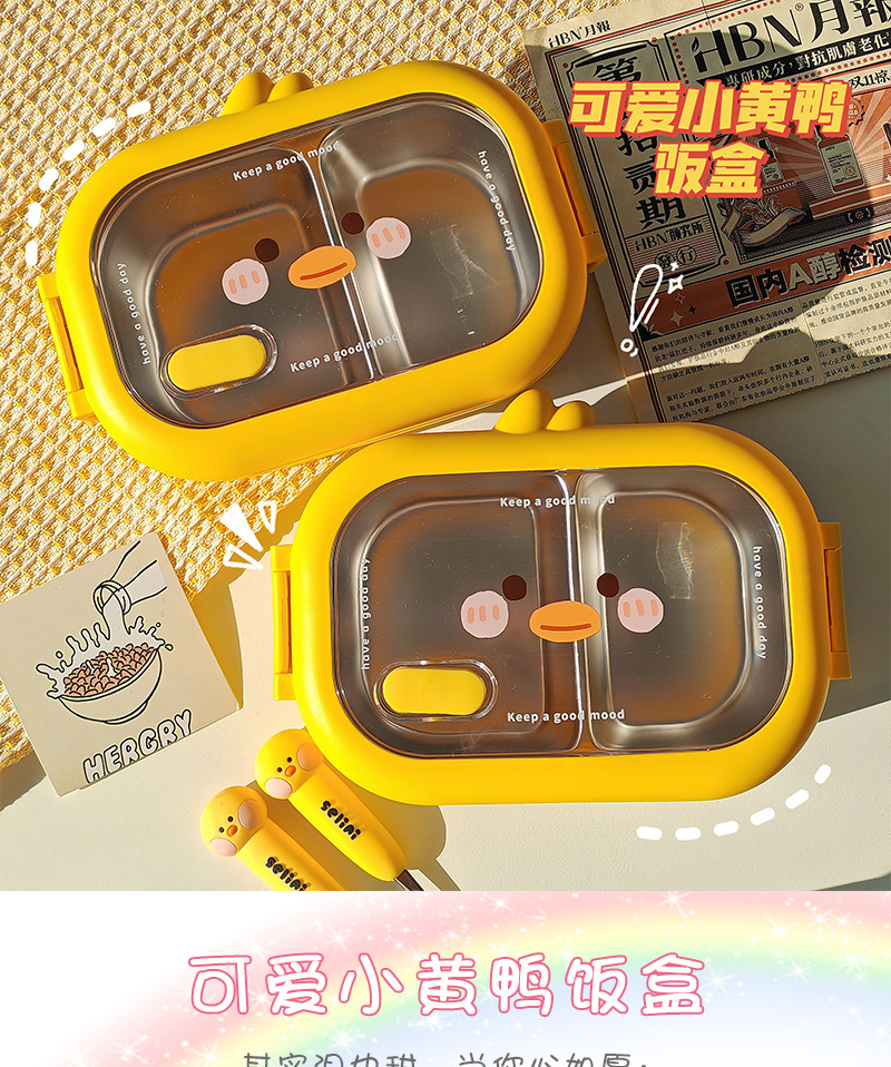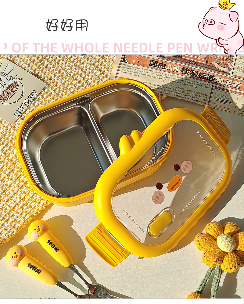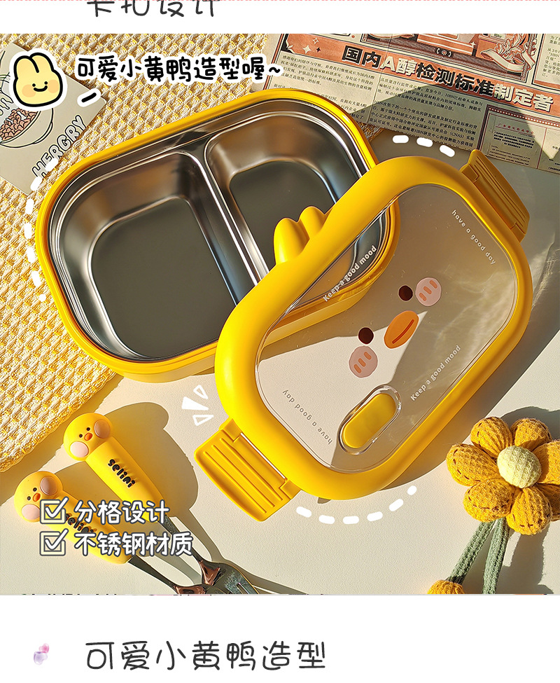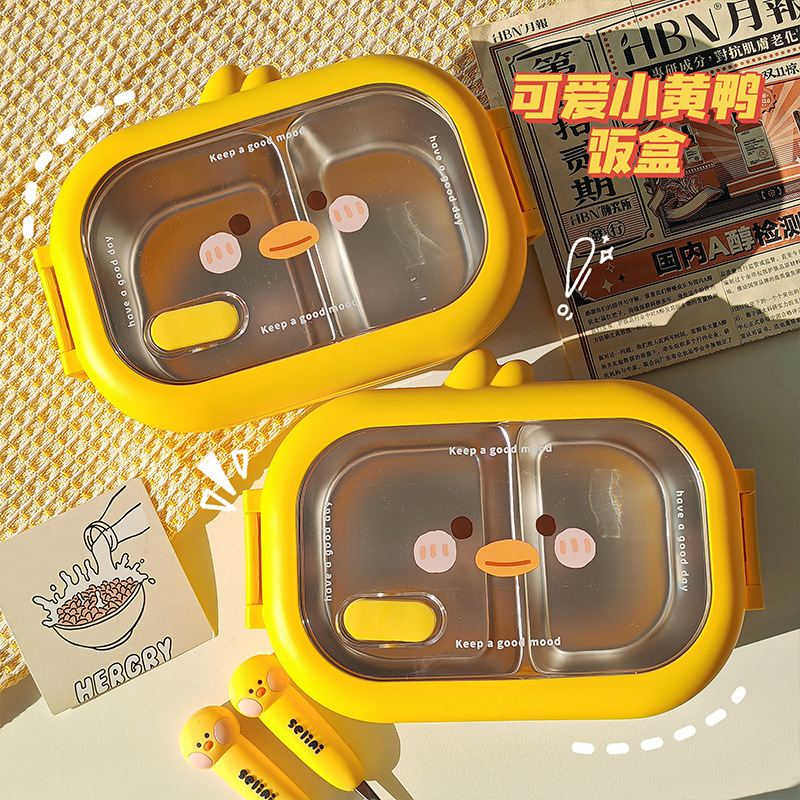 초등학생을위한 노란색 오리 스테인레스 스틸 도시락 사무실 근로자를위한 휴대용 도시락 대용량 전자레인지 난방 도시락