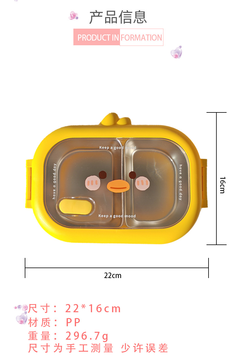 초등학생을위한 노란색 오리 스테인레스 스틸 도시락 사무실 근로자를위한 휴대용 도시락 대용량 전자레인지 난방 도시락스토어 가기