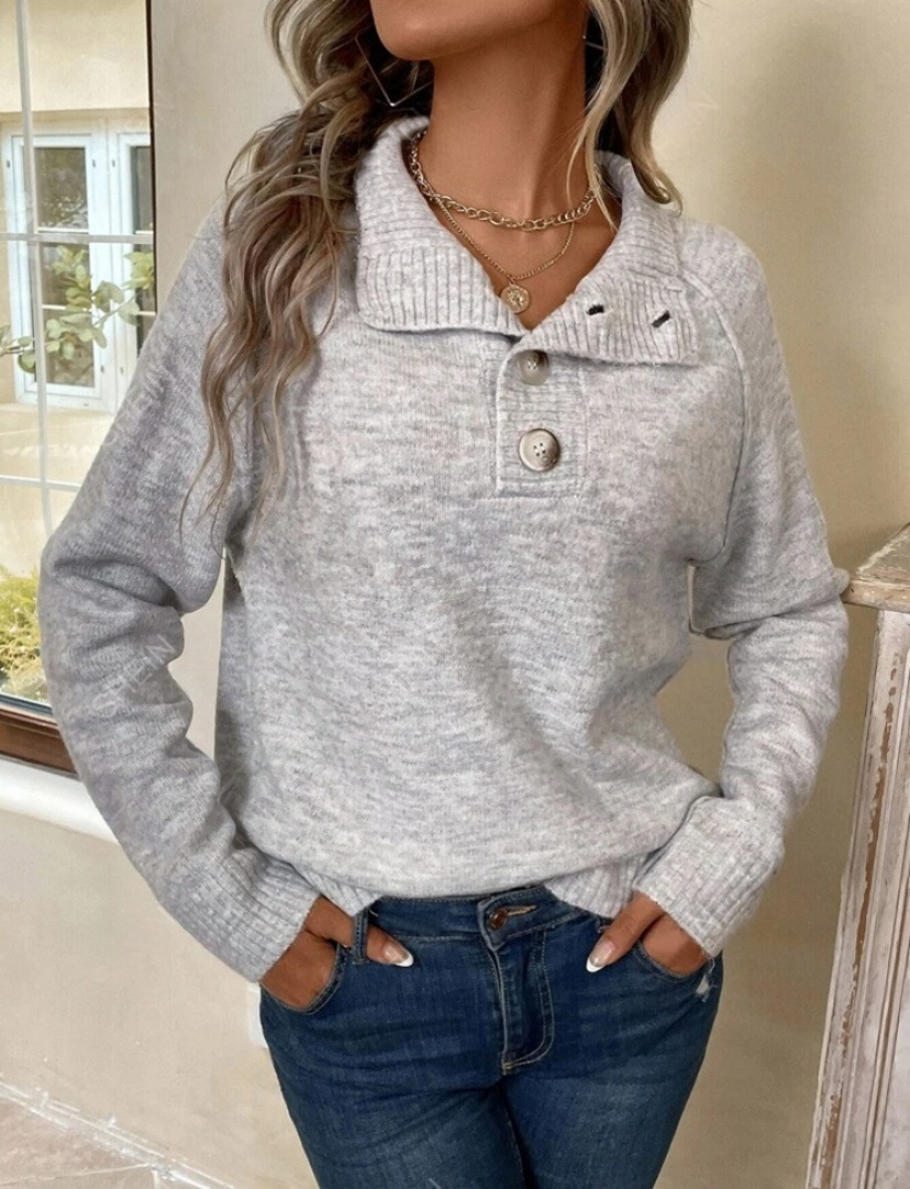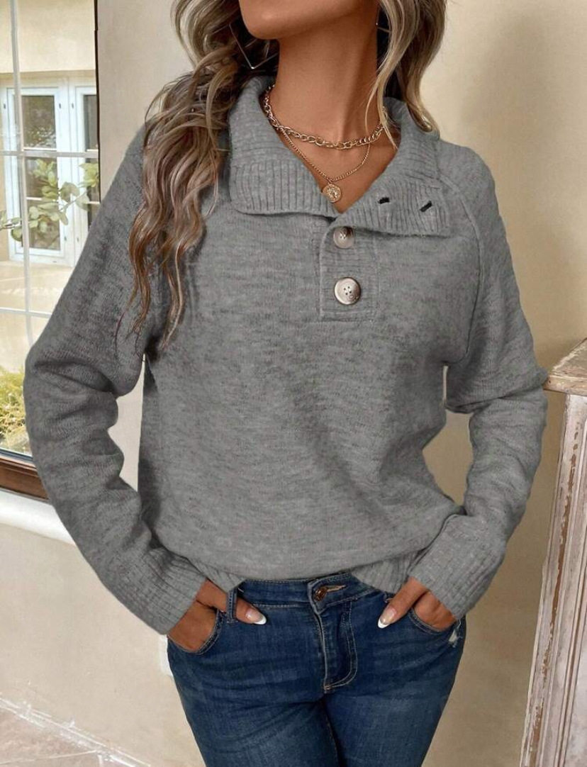 유럽 및 미국 아마존 신상품 여성 캐주얼 의류 단추 장식 회색 스탠드 칼라 스웨터 가을 여성복