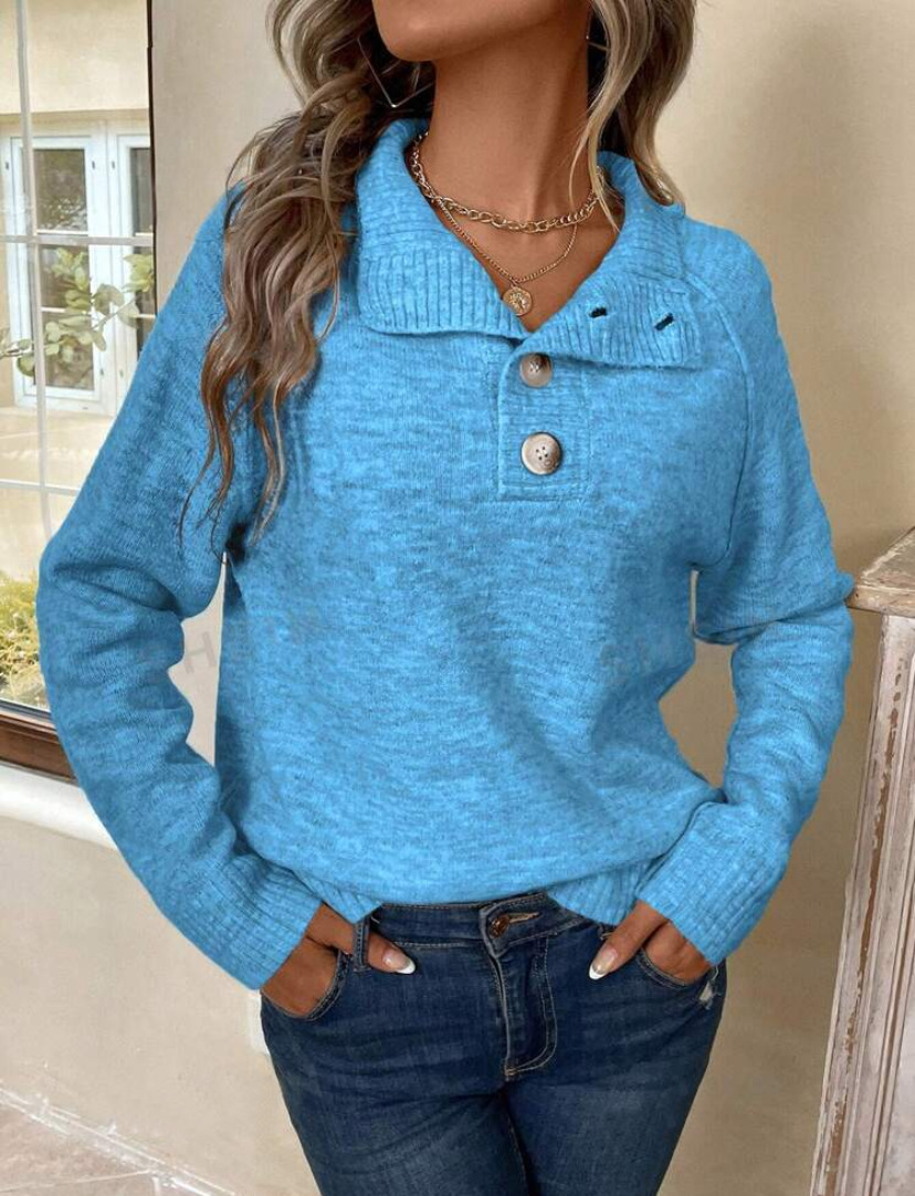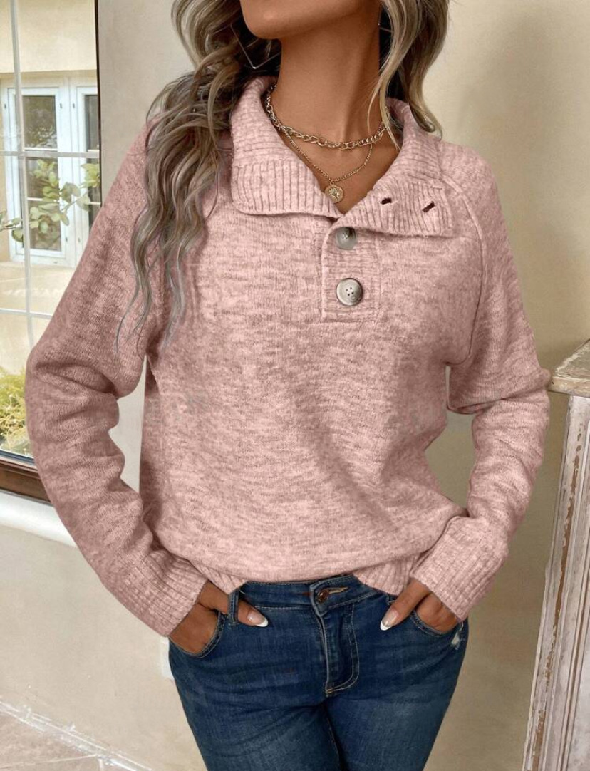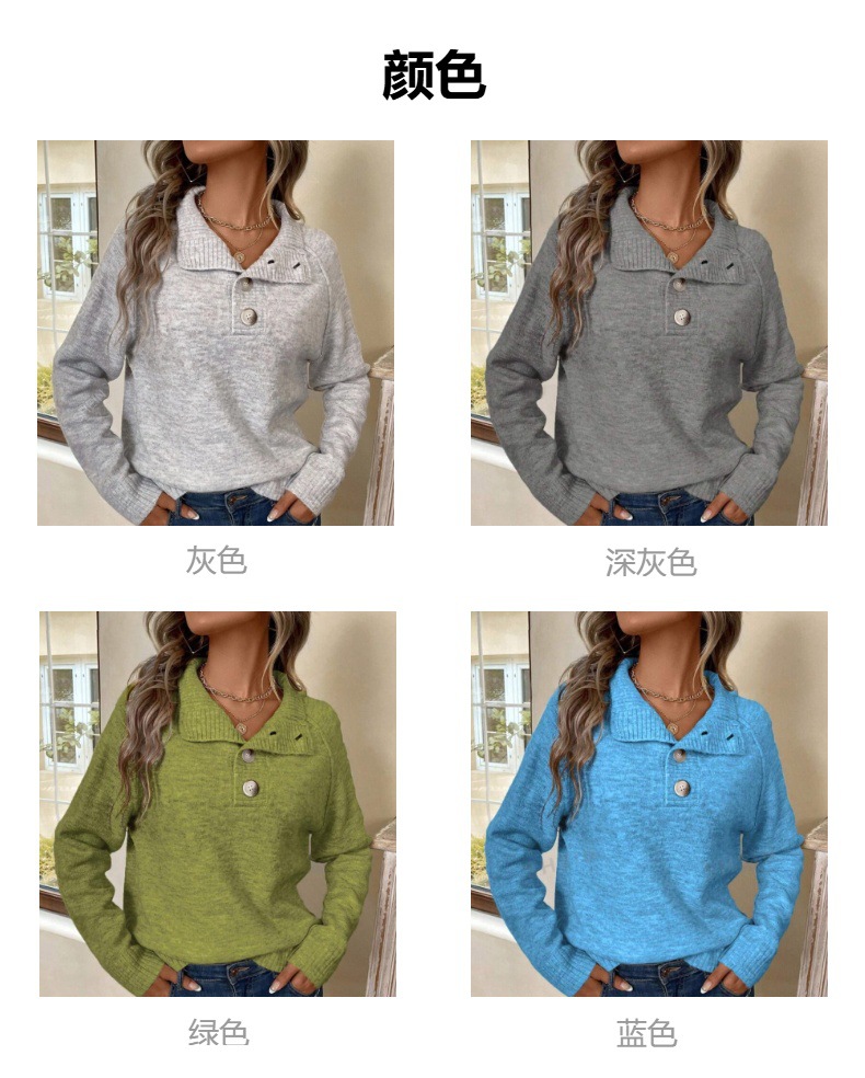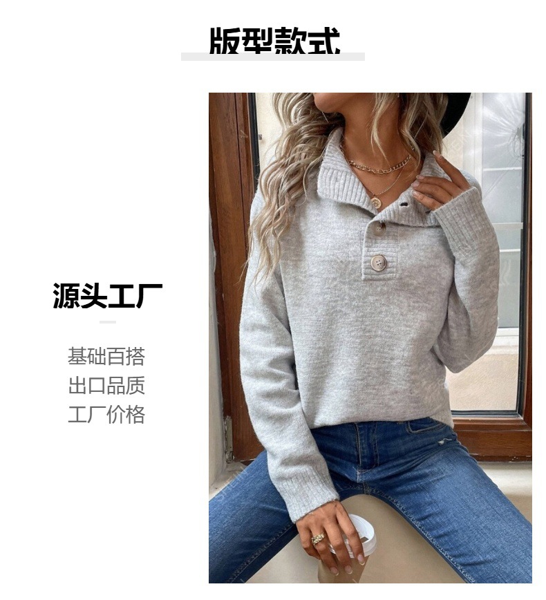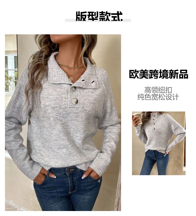 유럽 및 미국 아마존 신상품 여성 캐주얼 의류 단추 장식 회색 스탠드 칼라 스웨터 가을 여성복스토어 가기