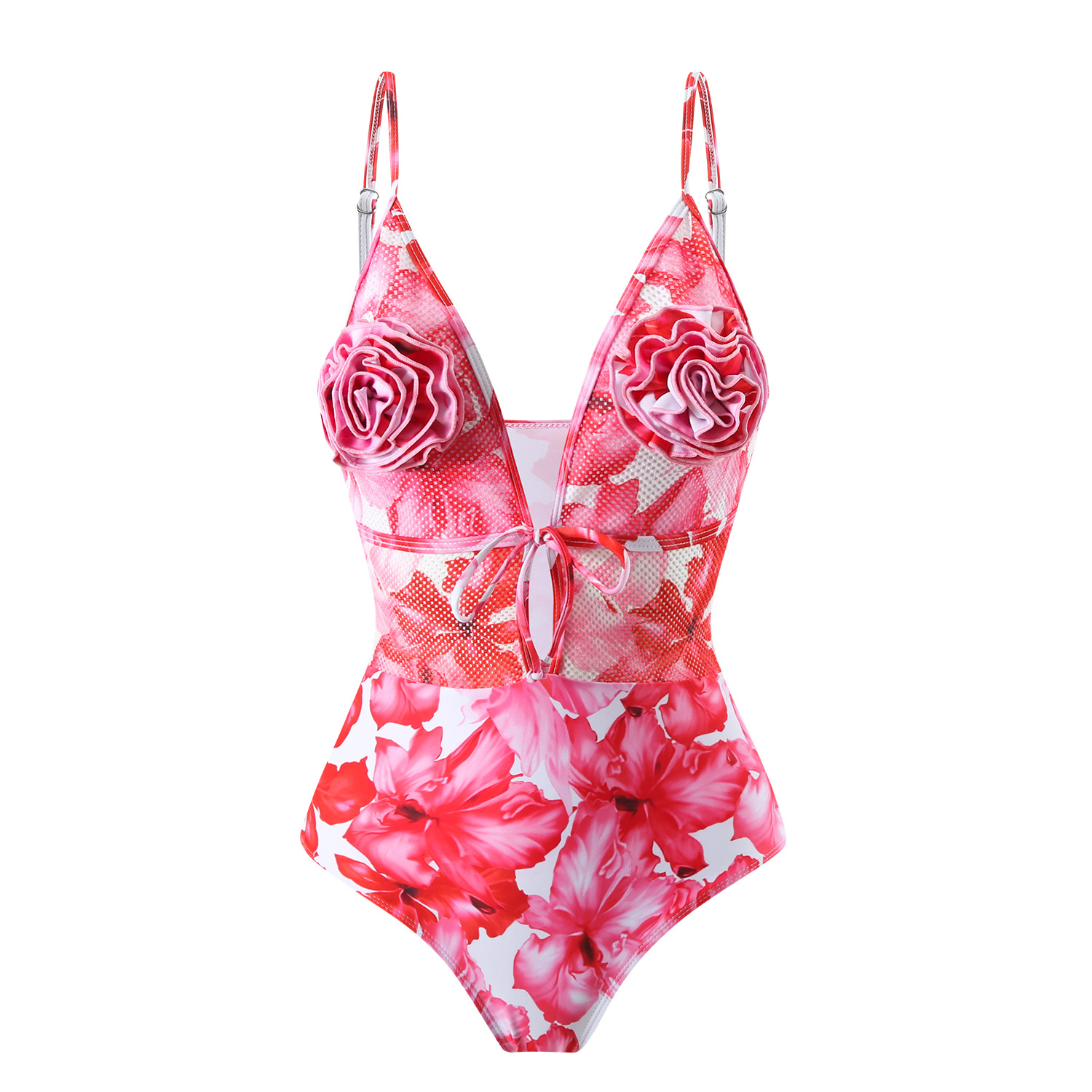 2024 새로운 패션 트렌드 섹시한 수영복 국경 인쇄 여성 레드 세트 세트 슬링 유럽과 미국 수영복