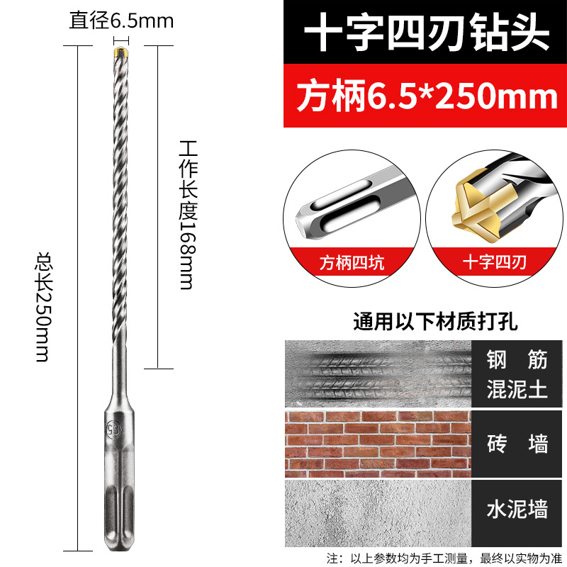 셀프 커팅 나사 용 특수 드릴 6.5 드릴 라운드 생크 크로스 임팩트 헤드 스크류 연장 4 블레이드 전기 해머 드릴
