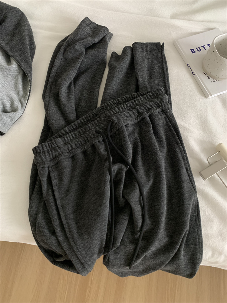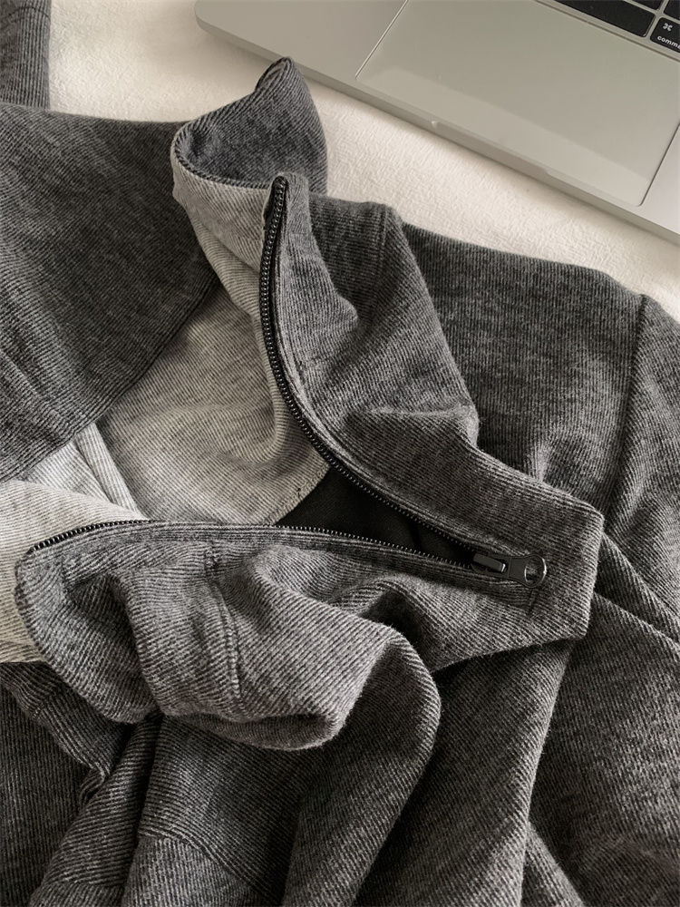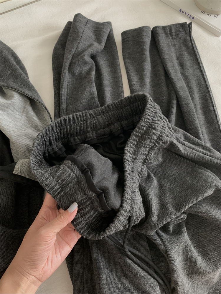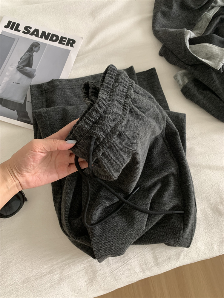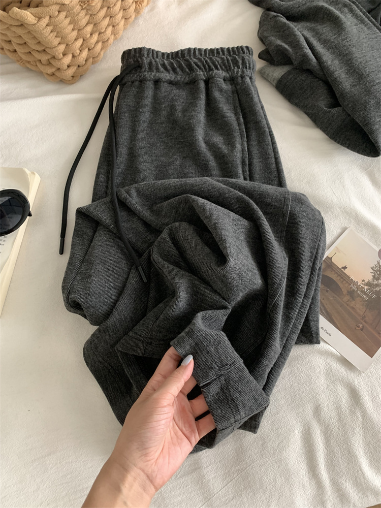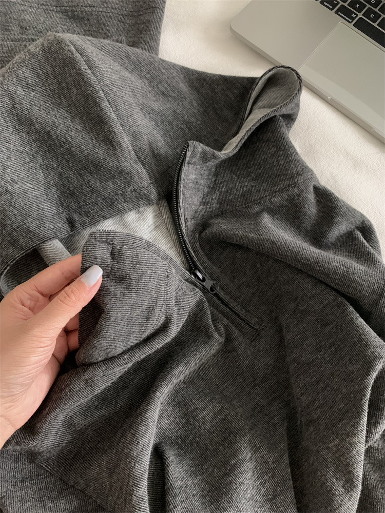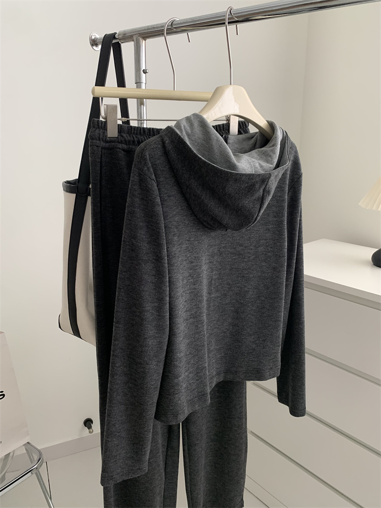 기질 통근 찹쌀 벨벳 게으른 세트 여성 디자인 센스 하프 Zip 색상 차단 후드 와이드 레그 바지 투피스 세트 가을