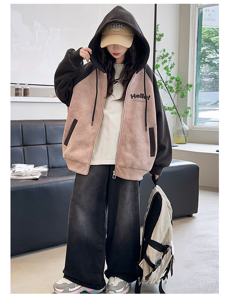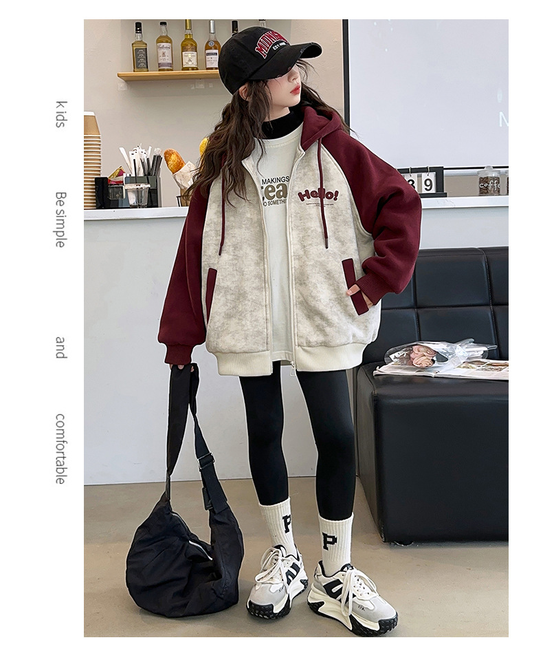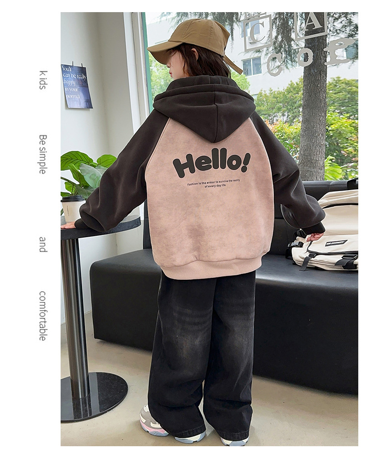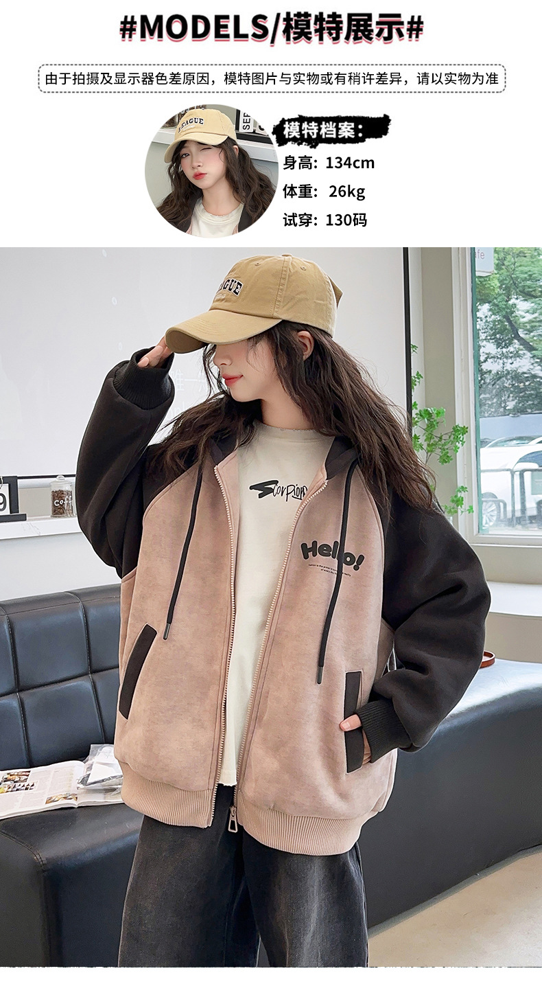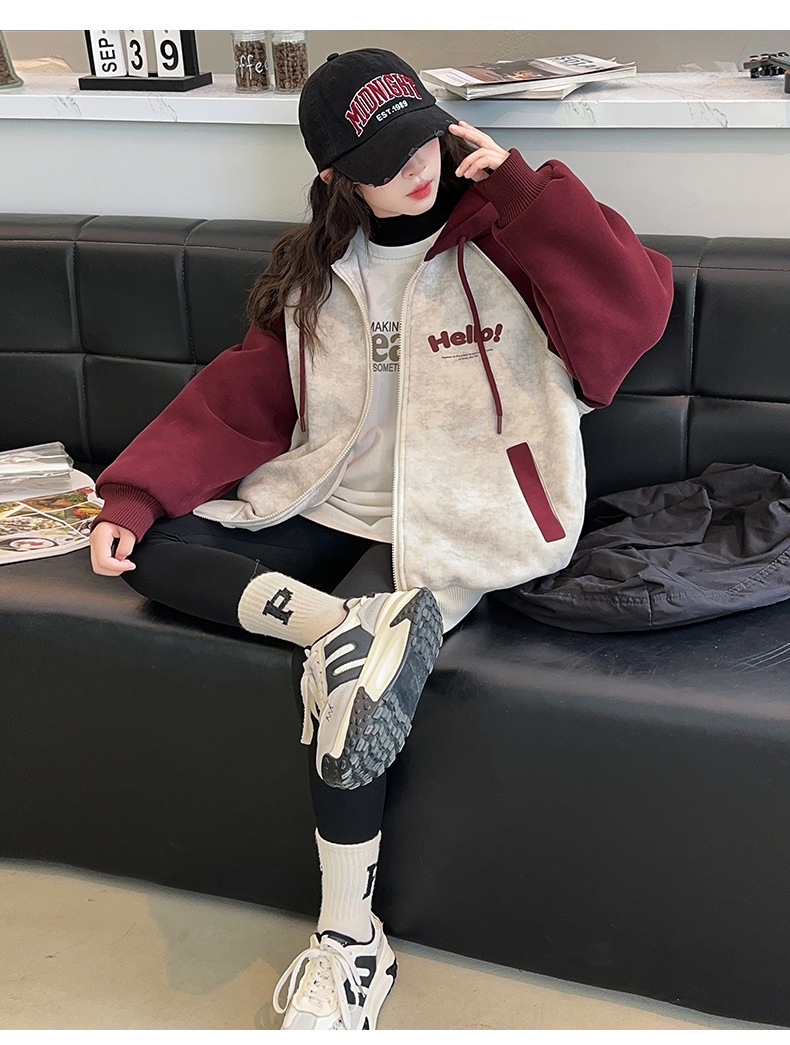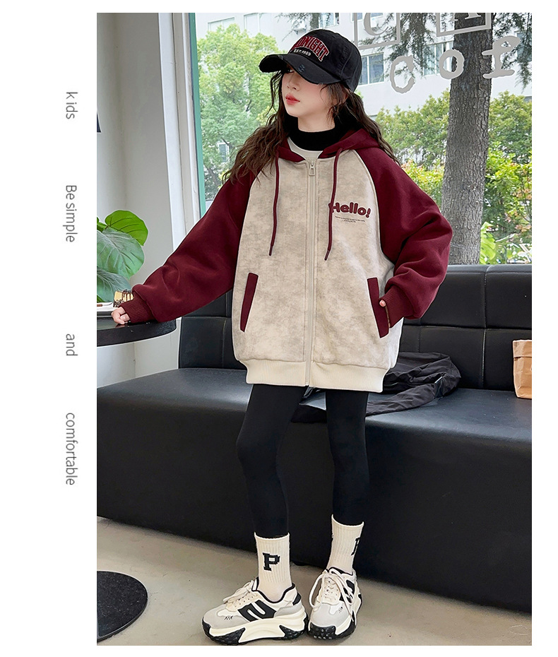 소녀 스웨트 셔츠 가을과 겨울 코트 기모 후드 2024 새로운 스타일 큰 어린이 가을 코트 두꺼운 소녀 캐주얼 루즈 탑스토어 가기