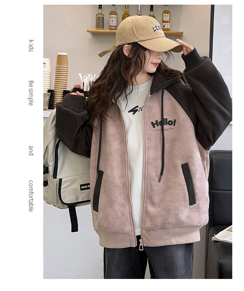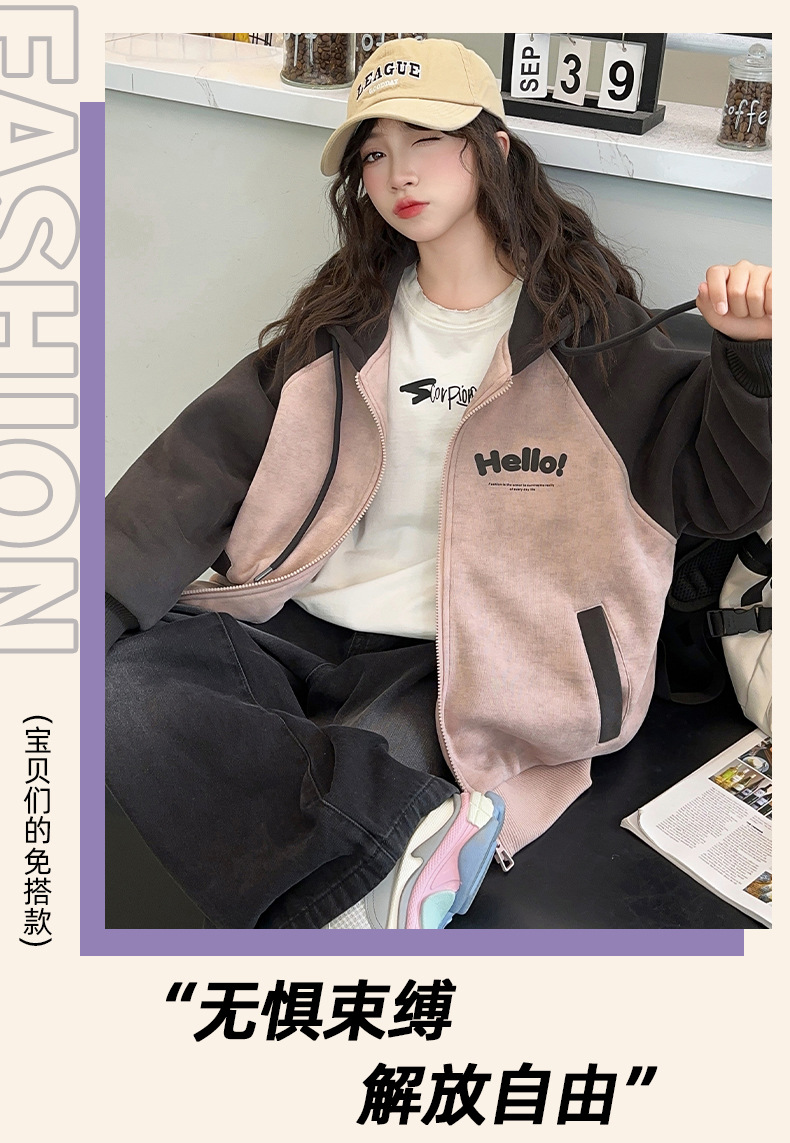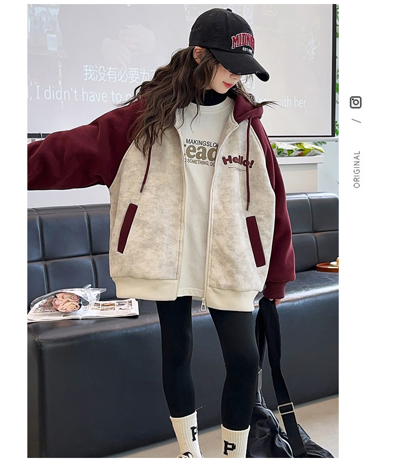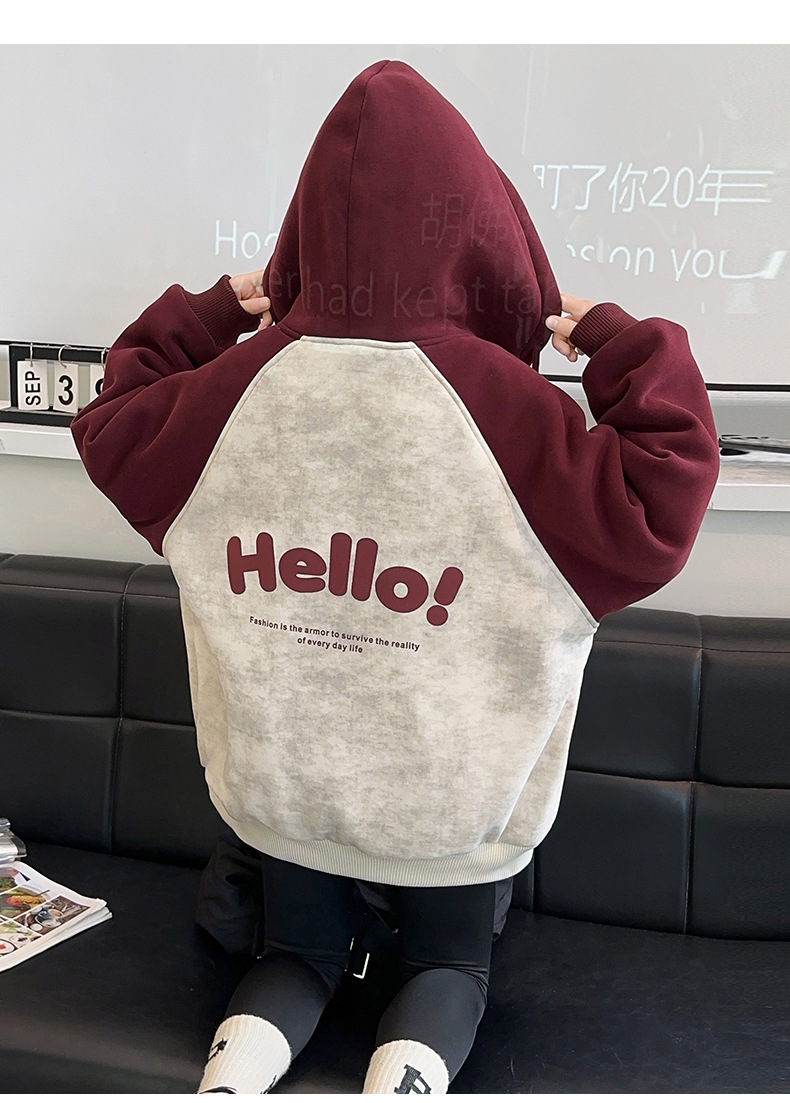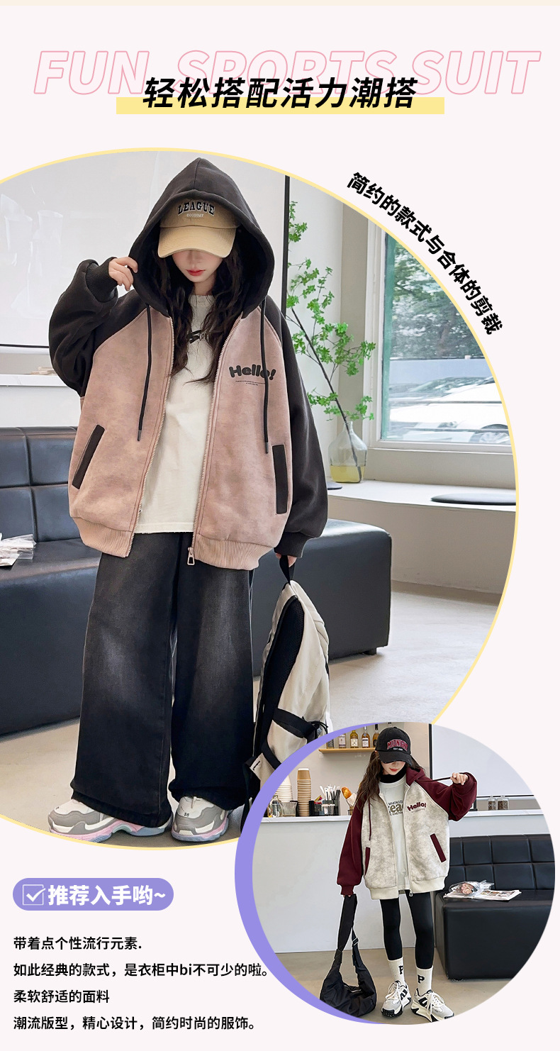 소녀 스웨트 셔츠 가을과 겨울 코트 기모 후드 2024 새로운 스타일 큰 어린이 가을 코트 두꺼운 소녀 캐주얼 루즈 탑스토어 가기