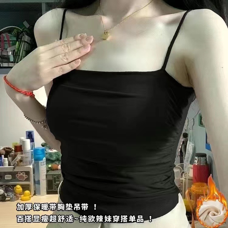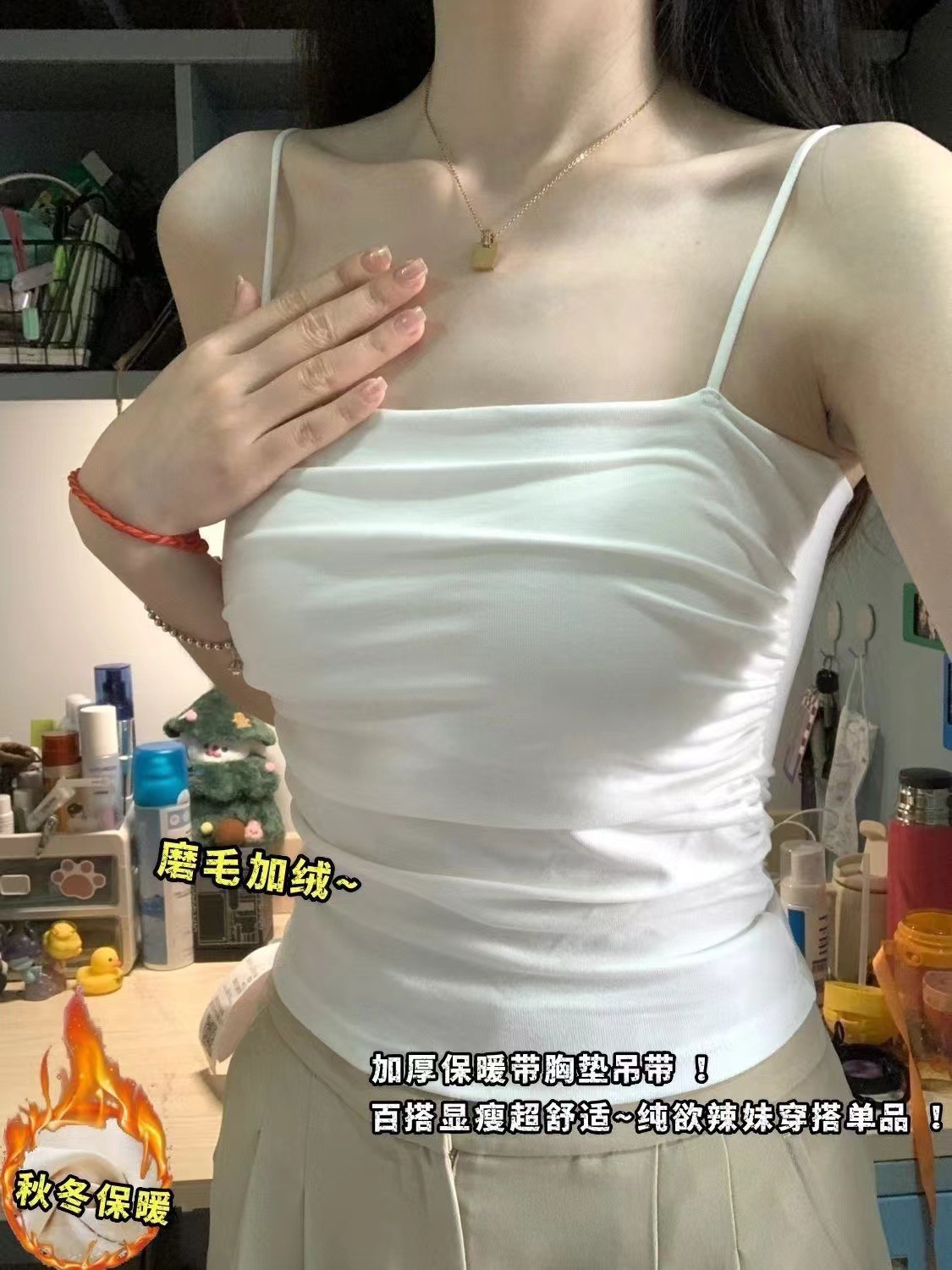 가을과 겨울 그라인딩 봉제 가슴 패드 스파이스 소녀 카미 솔 조끼와 따뜻하게 주름 된 여성 순수한 슬림베이스를보고 싶어 뷰티 백 속옷 여성스토어 가기
