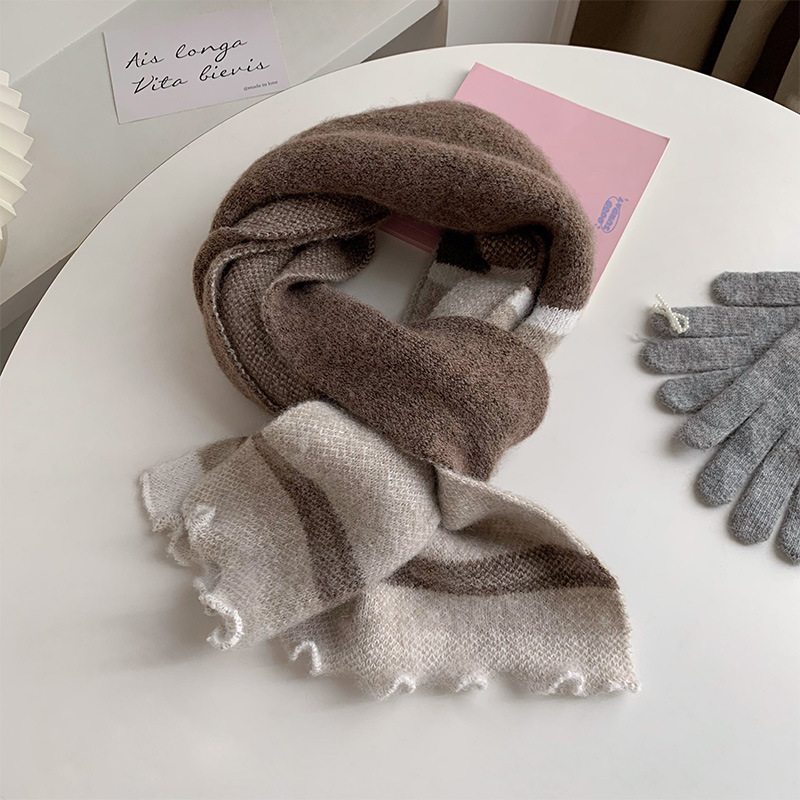 일본식 활 스카프 여자 2024 년 새 가을과 겨울 양모 줄무늬 레이스 한국식 고급 올매치 귀여운 스카프스토어 가기