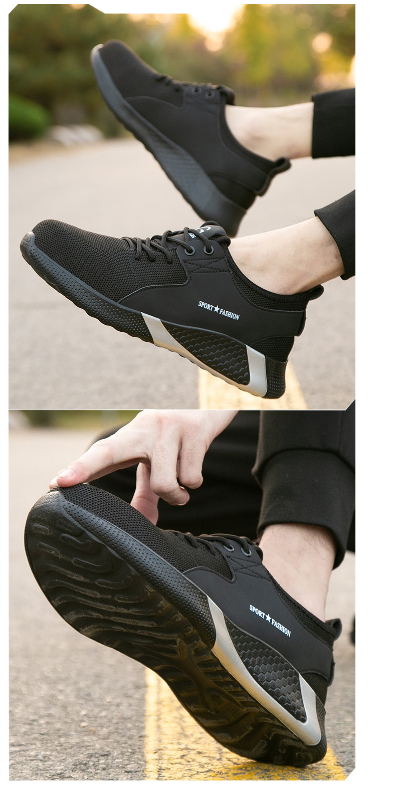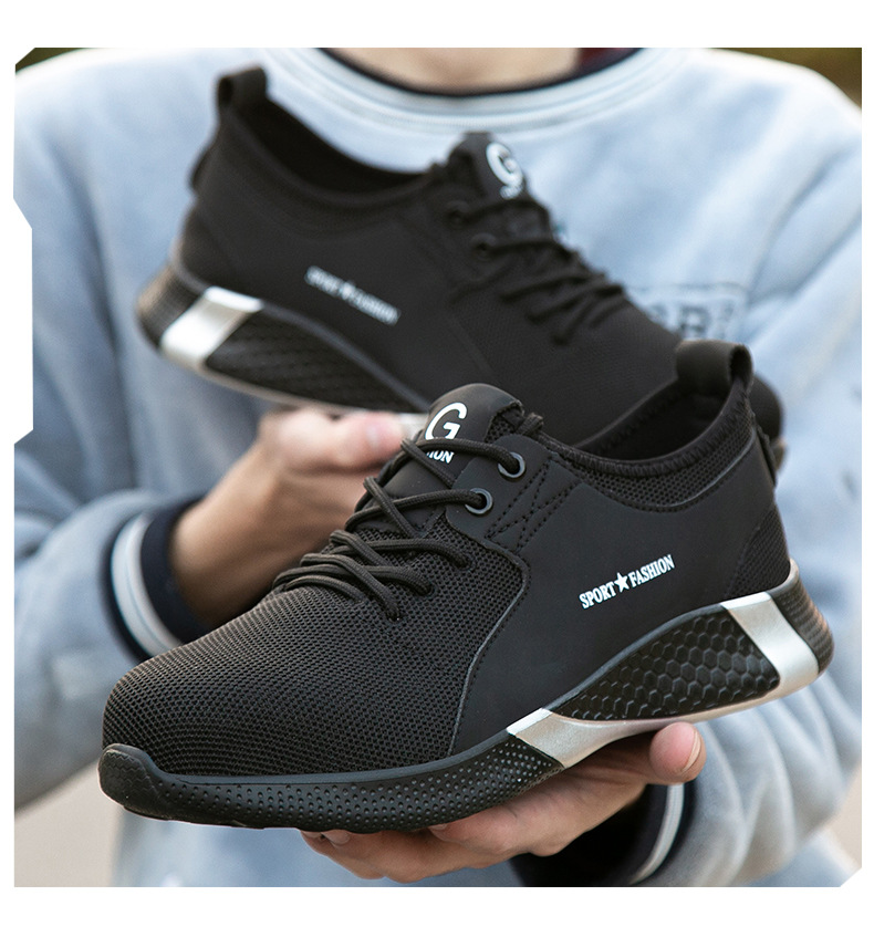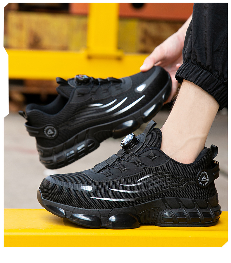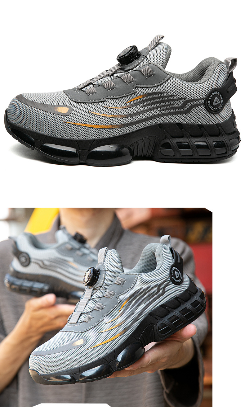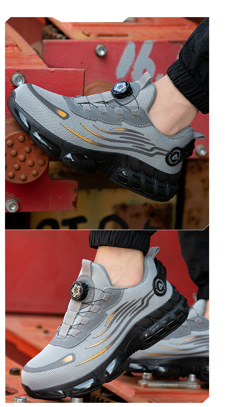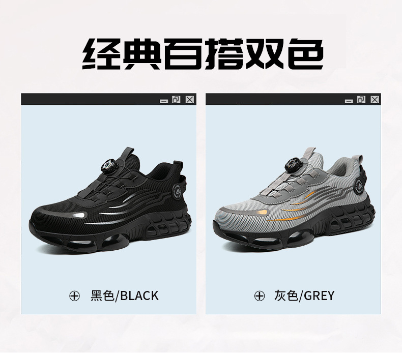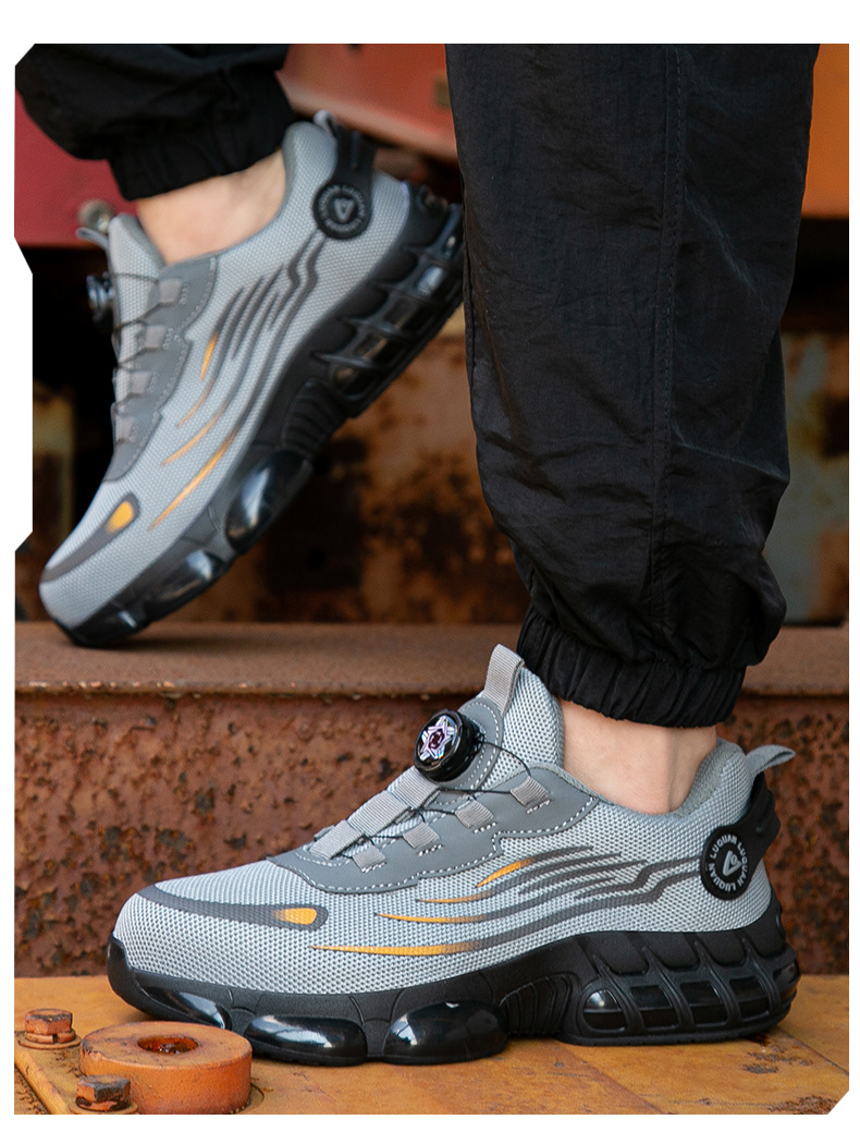 회전 버튼 노동 보호 작업 신발 물 잔물결 여름 통기성 내마모성 강철 발가락 안티 스매싱 및 미끄럼 방지 남성 노동 보호 신발