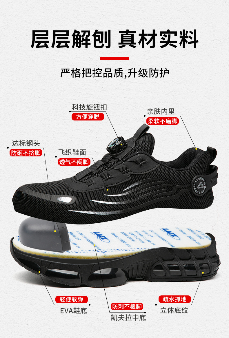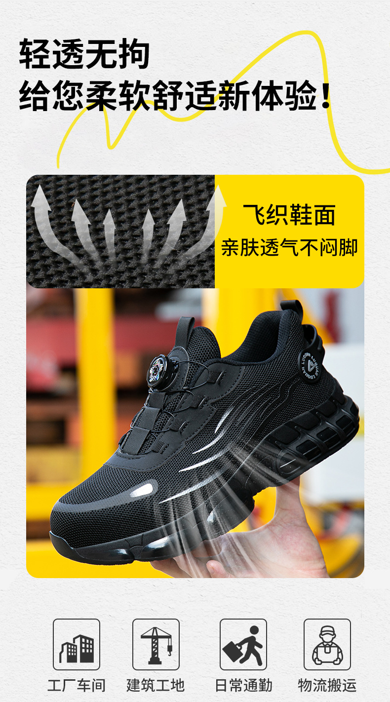 회전 버튼 노동 보호 작업 신발 물 잔물결 여름 통기성 내마모성 강철 발가락 안티 스매싱 및 미끄럼 방지 남성 노동 보호 신발스토어 가기
