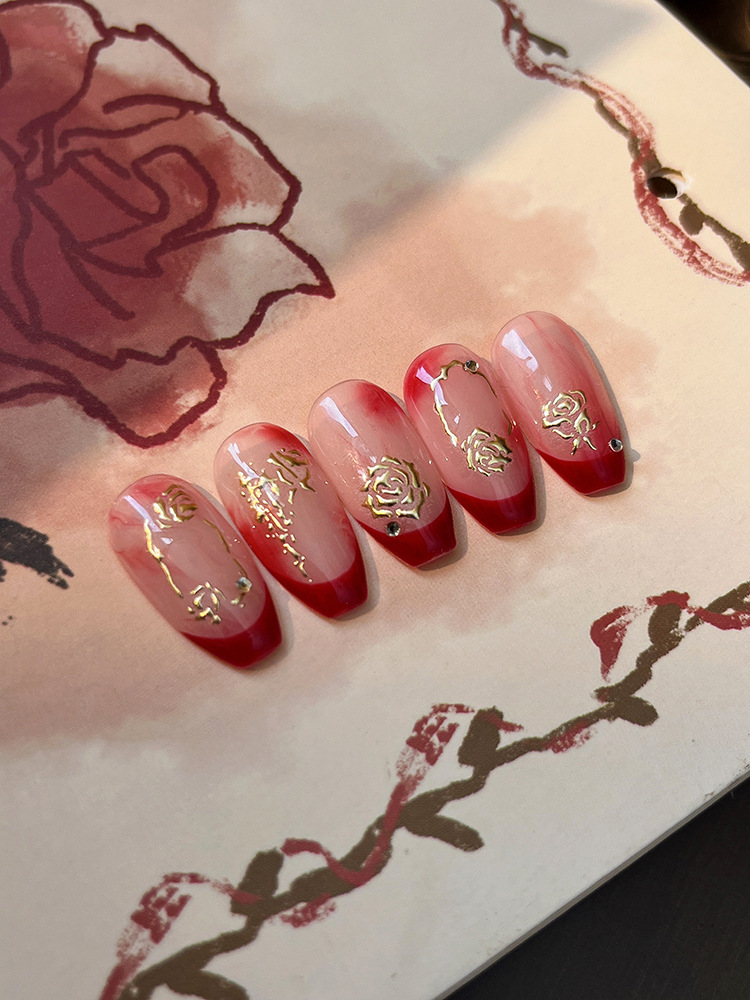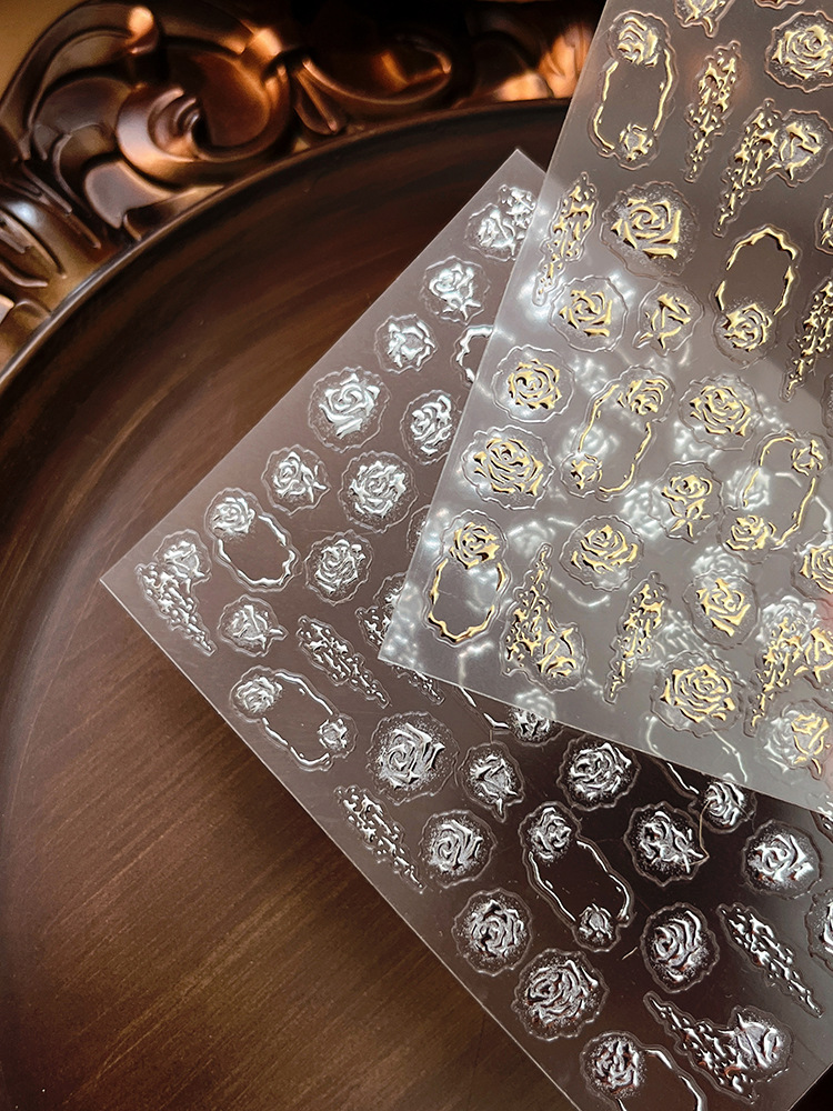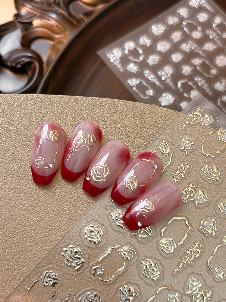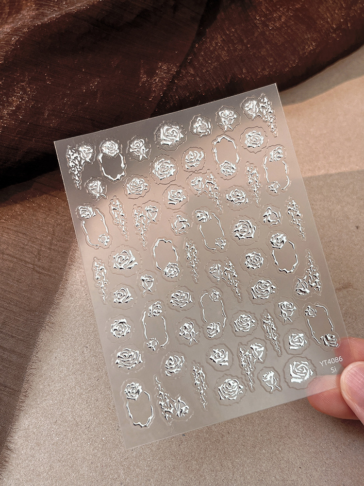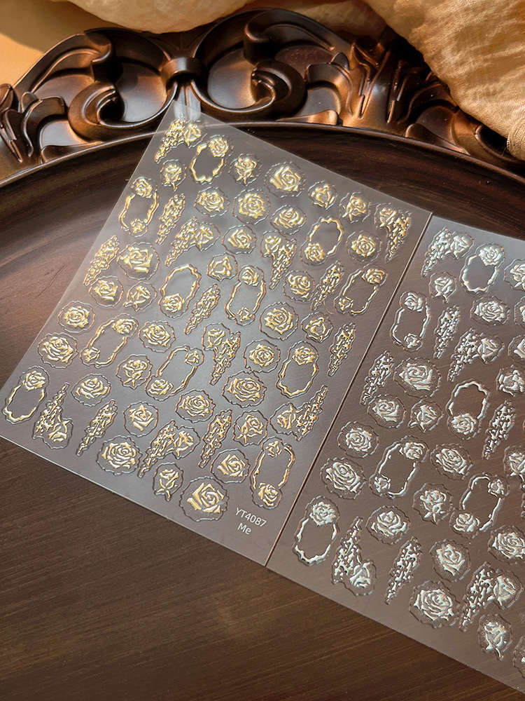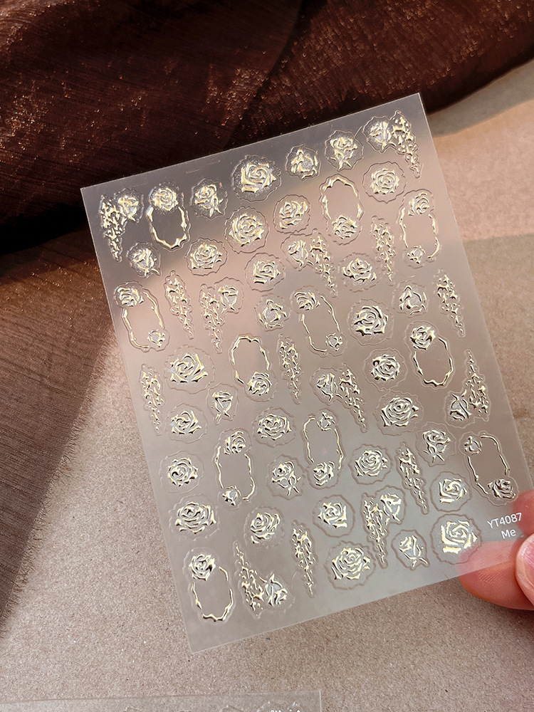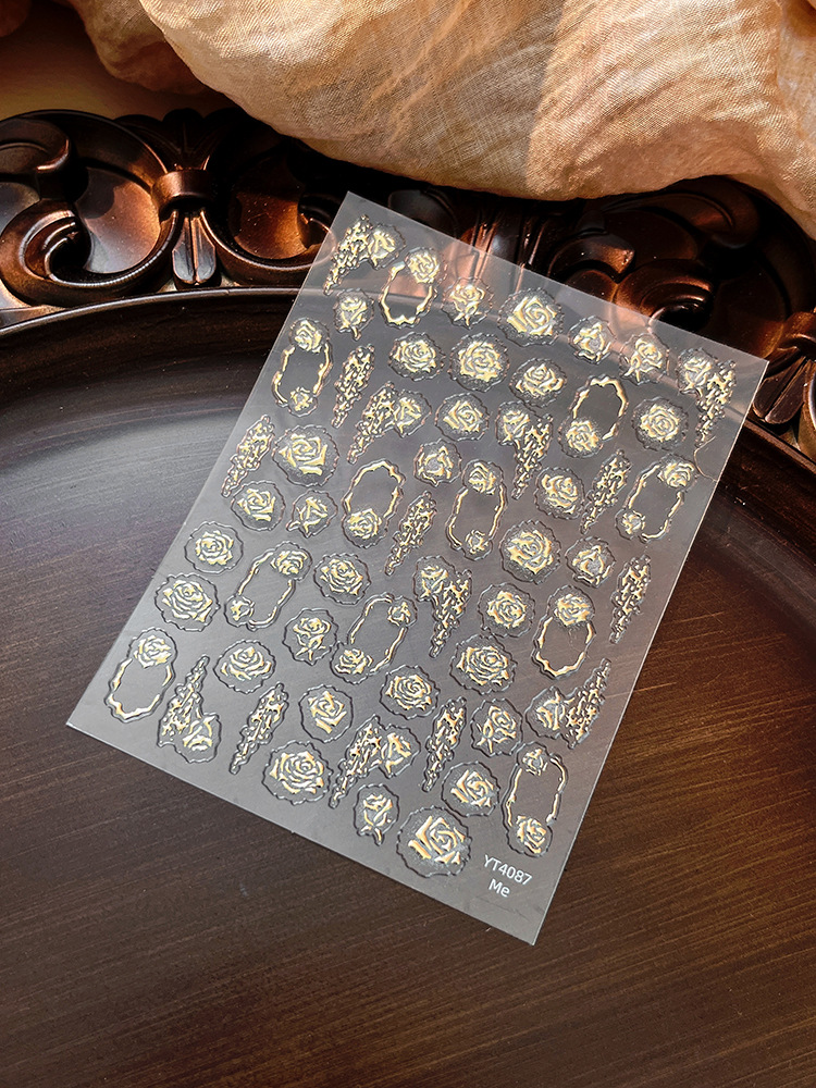 YITU 개미 그림 화려한 장미 네일 아트 스티커 도금 꽃 접착 네일 장식 데칼 도매 YT4087