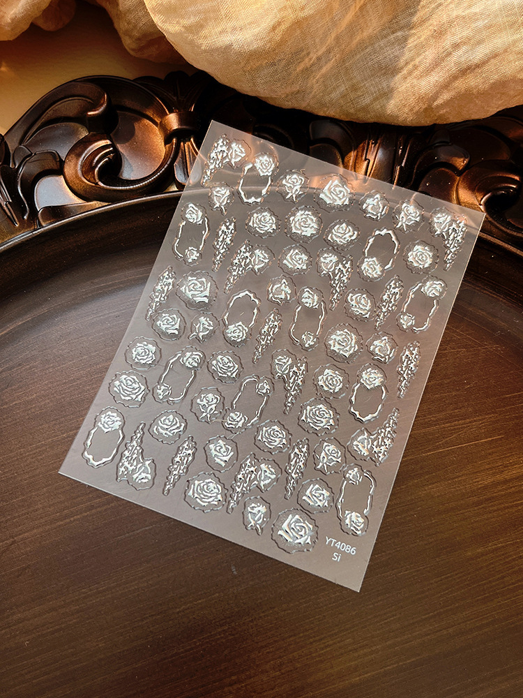YITU 개미 그림 화려한 장미 네일 아트 스티커 도금 꽃 접착 네일 장식 데칼 도매 YT4087스토어 가기