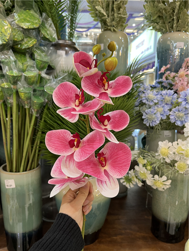 하이 퀄리티 손 느낌 9 머리 Phalaenopsis 인공 단일 지점 가짜 꽃 북유럽 테이블 장식 웨딩 꽃꽂이 부드러운 복장스토어 가기
