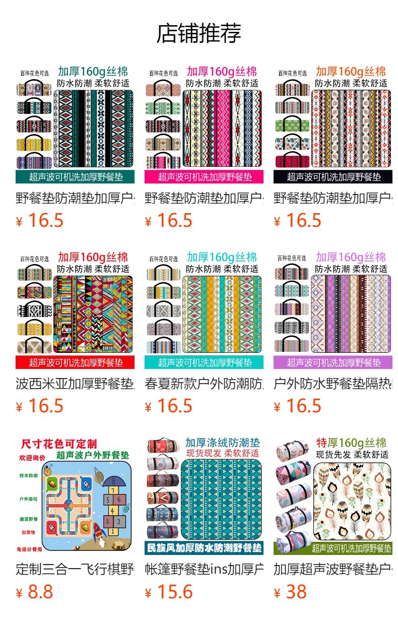 보헤미안 피크닉 매트, 방습 매트, 두꺼운 야외 방수 해변 매트, 텐트 내부 매트, 캠핑 휴대용 피크닉 매트스토어 가기