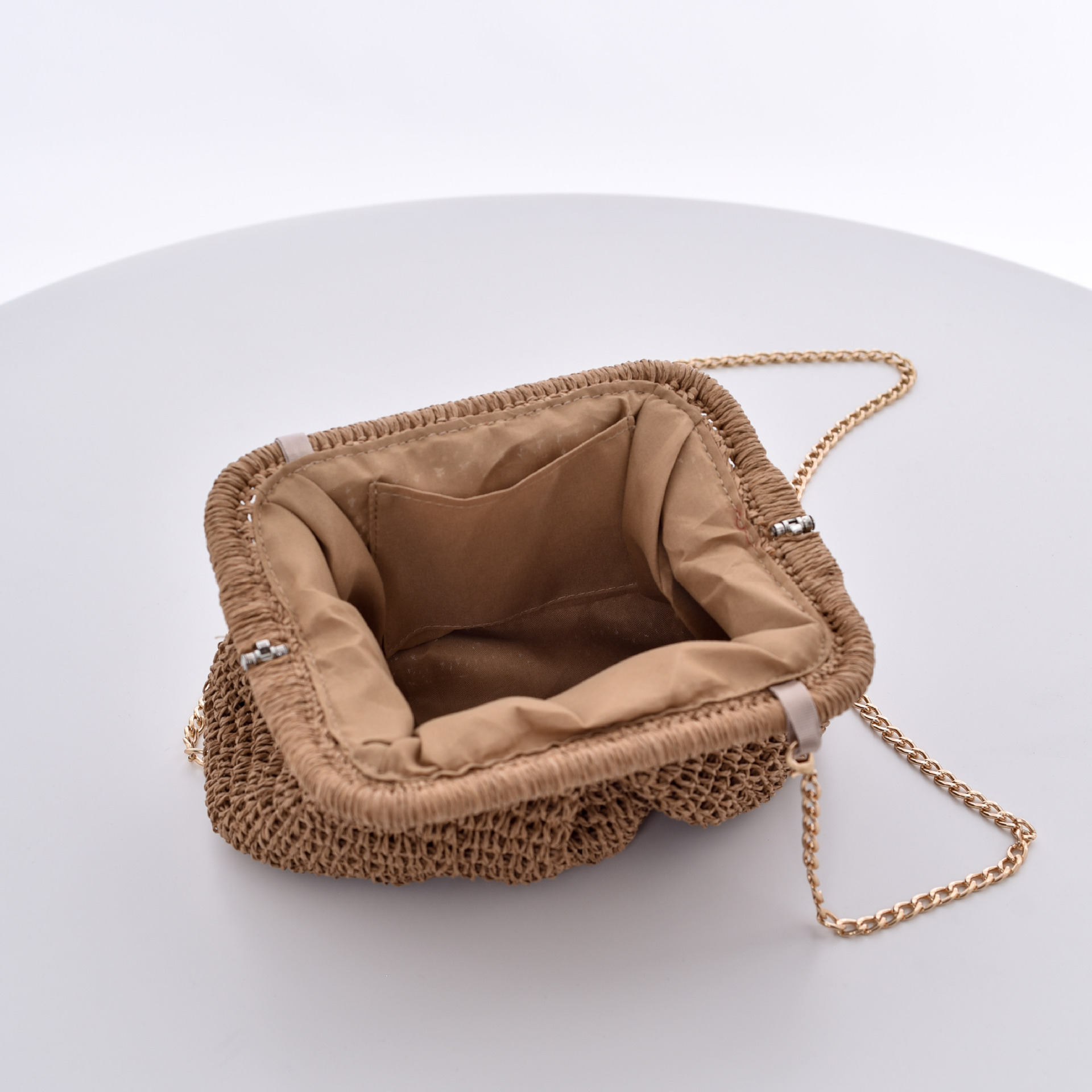 수제 밀짚 종이 로프 크로 셰 뜨개질 국경 핫 클라우드 클립 체인 어깨 크로스 바디 여성용 핸드 백 공장 재고