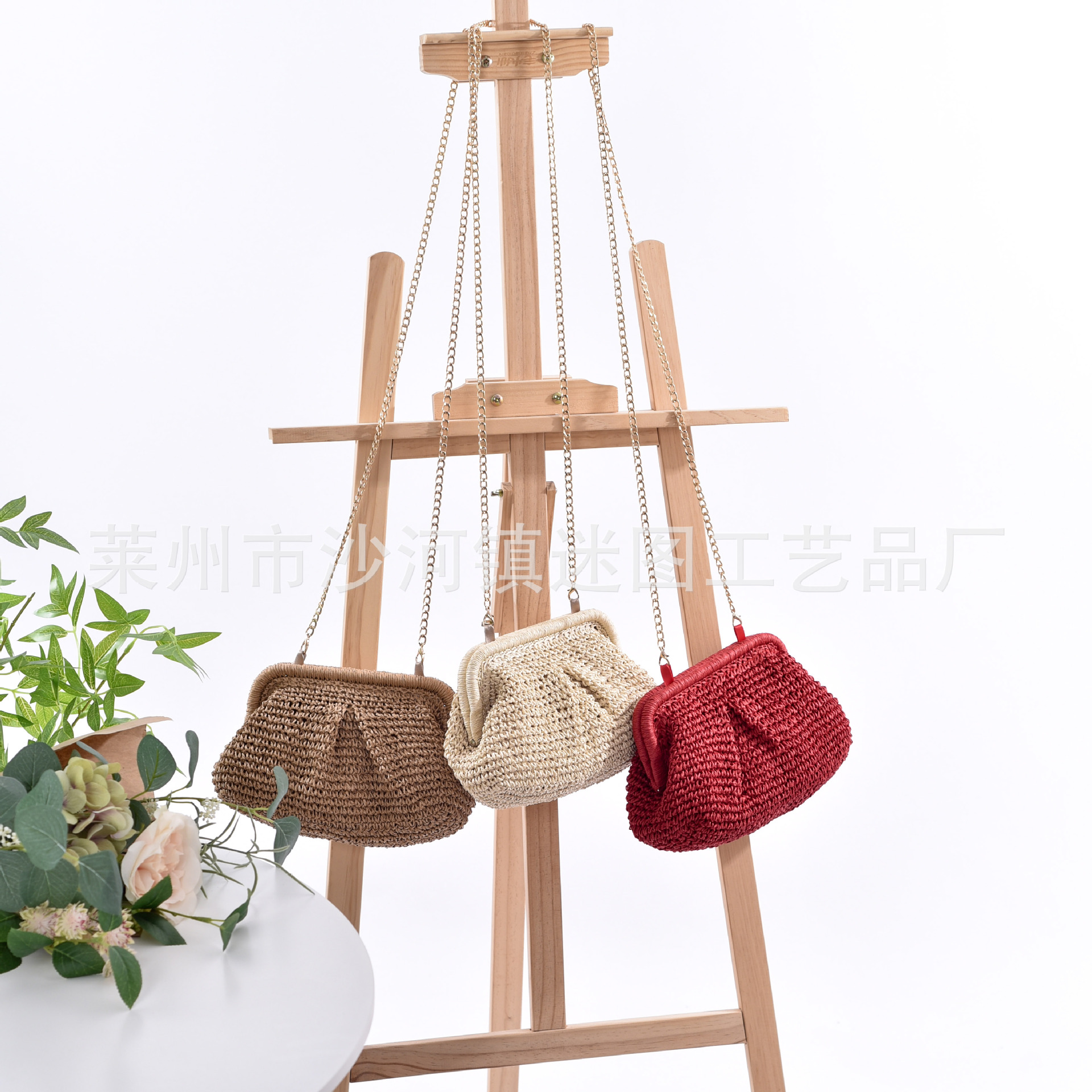 수제 밀짚 종이 로프 크로 셰 뜨개질 국경 핫 클라우드 클립 체인 어깨 크로스 바디 여성용 핸드 백 공장 재고스토어 가기