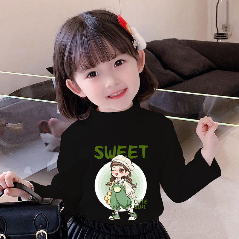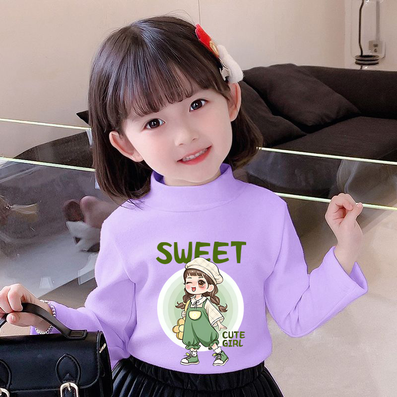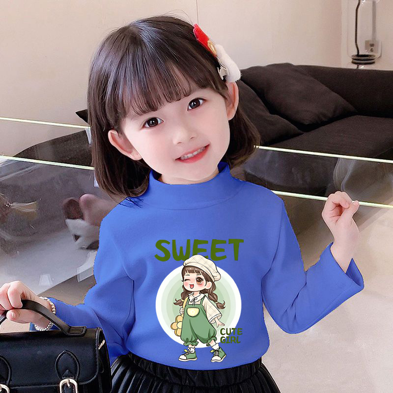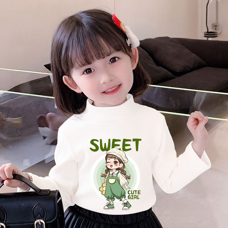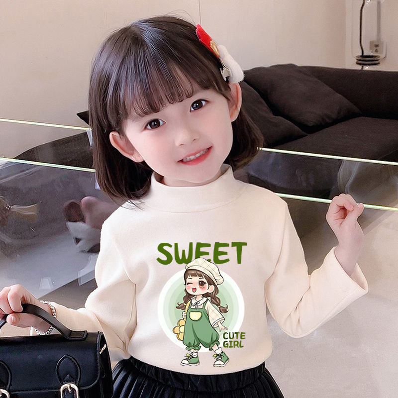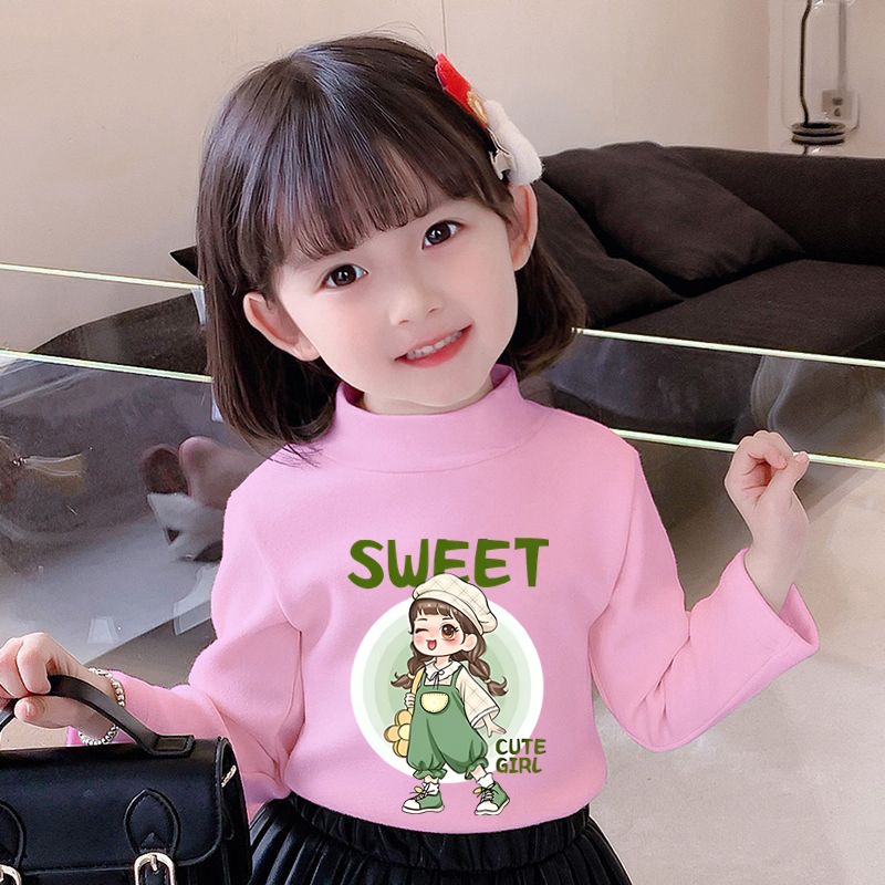 Y2528 # 어린이 소녀 벨벳 긴팔 티셔츠 새로운 트렌드 귀여운 만화 인쇄 둥근 목 벨벳 소녀스토어 가기