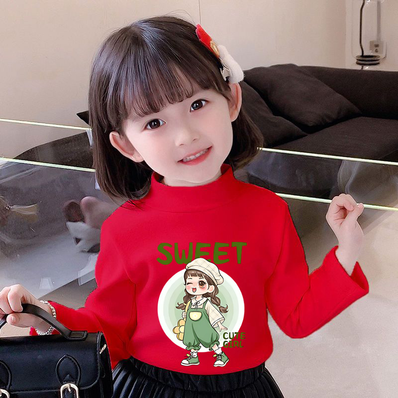 Y2528 # 어린이 소녀 벨벳 긴팔 티셔츠 새로운 트렌드 귀여운 만화 인쇄 둥근 목 벨벳 소녀