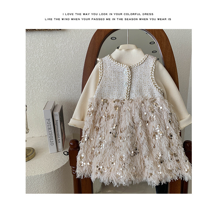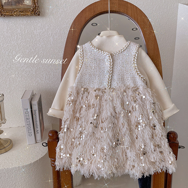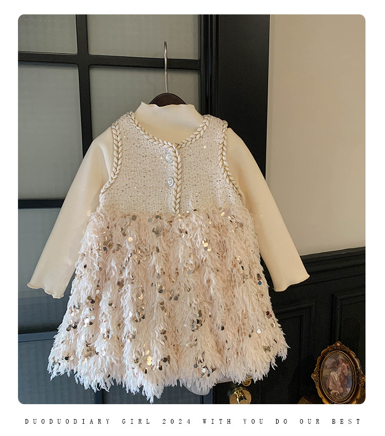 여자 샤넬 스타일 원피스 가을과 겨울 기모 기지 셔츠 생일 원피스 공주 원피스 깃털 조끼 원피스 세트스토어 가기