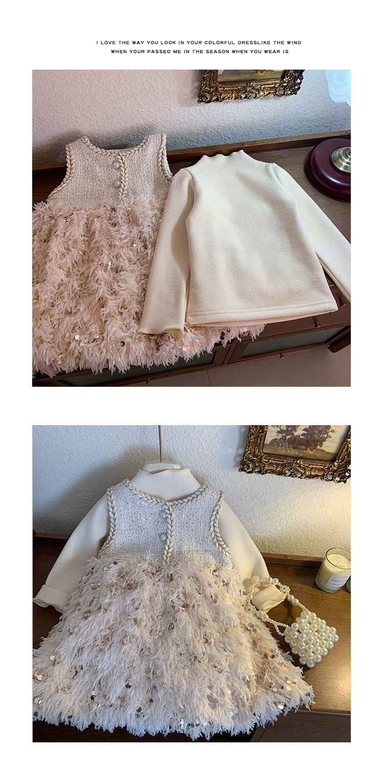 여자 샤넬 스타일 원피스 가을과 겨울 기모 기지 셔츠 생일 원피스 공주 원피스 깃털 조끼 원피스 세트