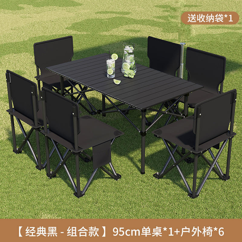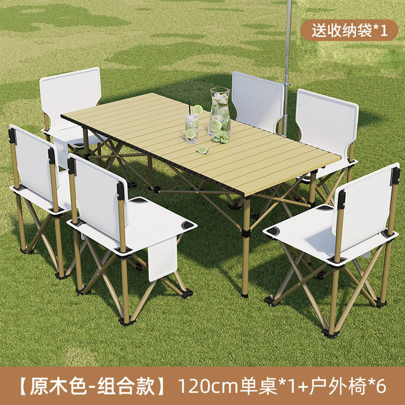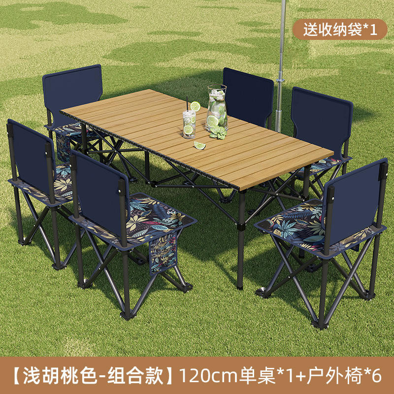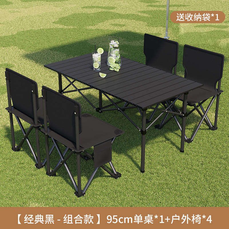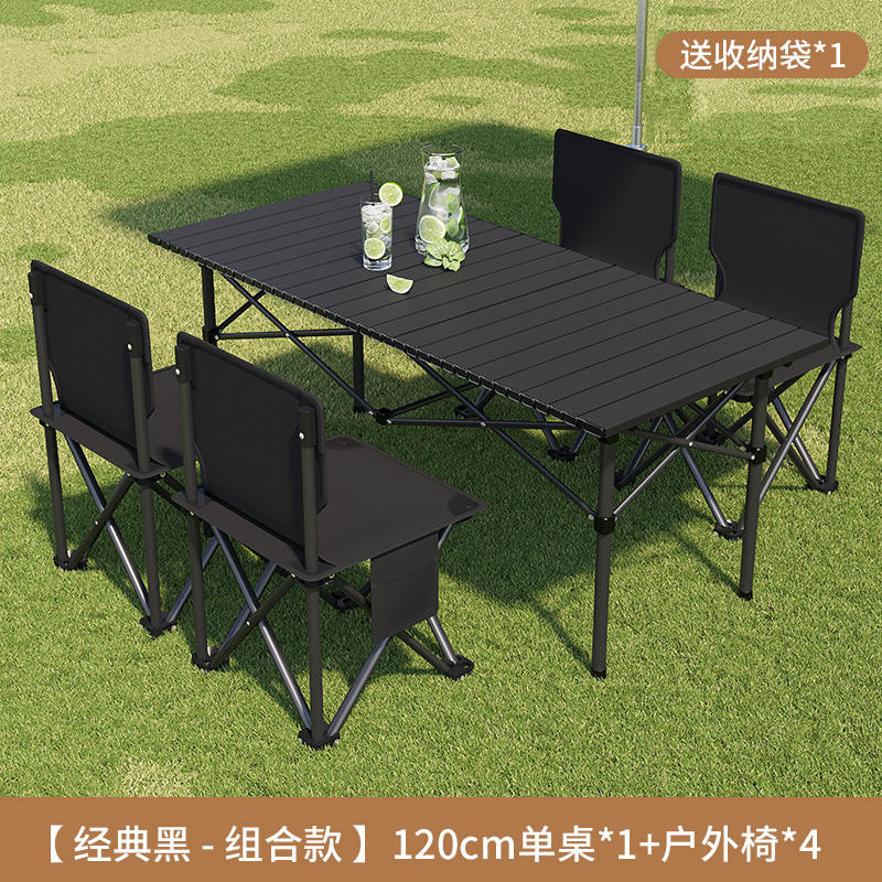접이식 테이블 야외 휴대용 피크닉 테이블 캠핑 BBQ 테이블과 의자 조합 두꺼운 피크닉 세트 계란 롤 링스토어 가기