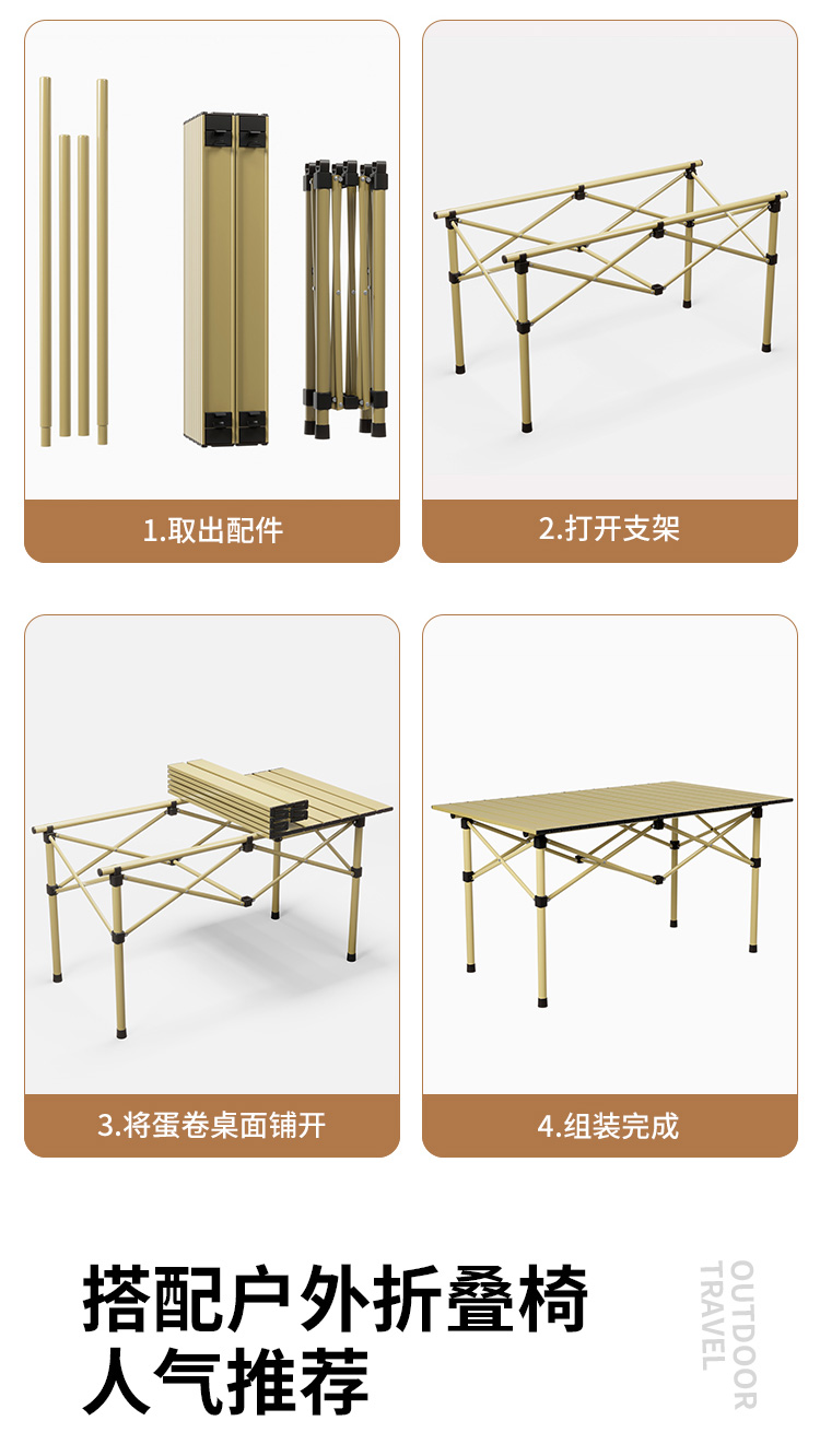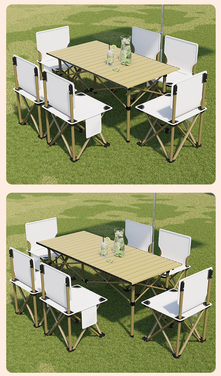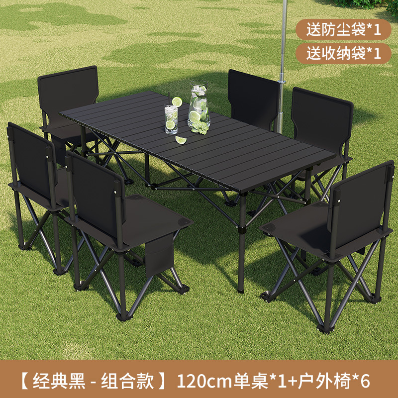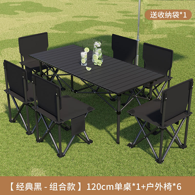 접이식 테이블 야외 휴대용 피크닉 테이블 캠핑 BBQ 테이블과 의자 조합 두꺼운 피크닉 세트 계란 롤 링스토어 가기