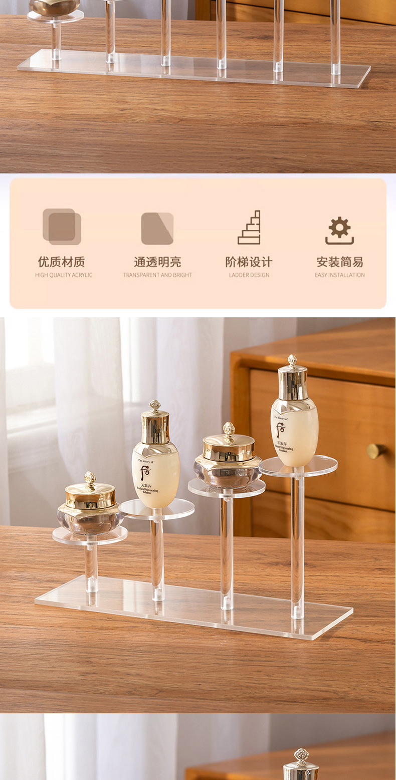 국경 아크릴 디스플레이 스탠드 투명 다기능 화장품 사다리 스토리지 랙 표준 스토리지 디스플레이 랙