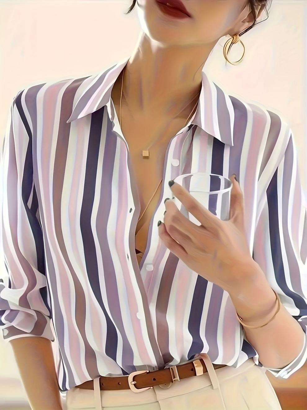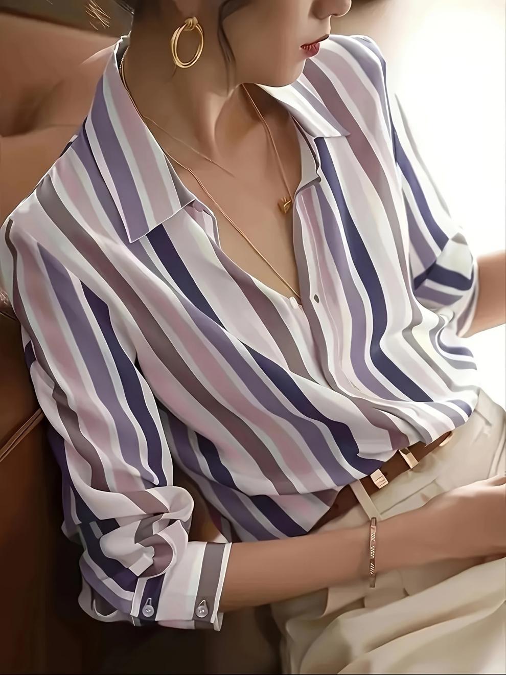 줄무늬 긴팔 셔츠 여성의 2024 가을 서양 스타일 셔츠 느슨한 쉬폰 셔츠 여성 디자인 센스 니치 탑스토어 가기