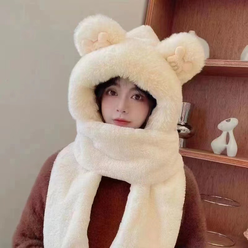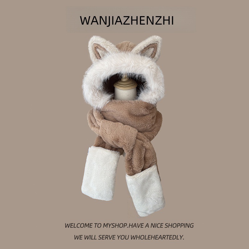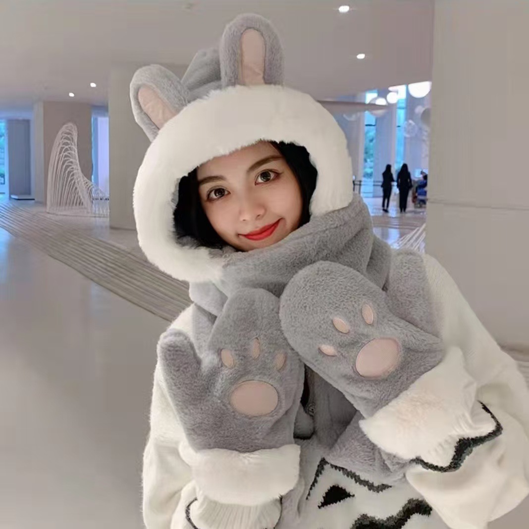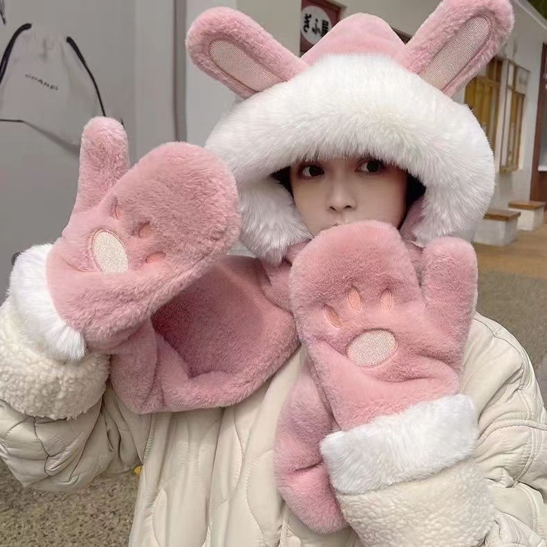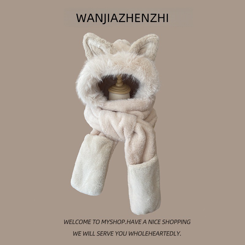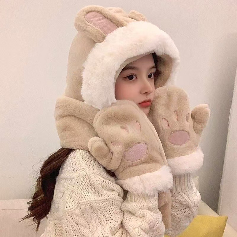 털모자, 스카프, 장갑 3종 세트, 다용도 여성용 가을 겨울 두꺼운 보온 방한 귀마개 후드