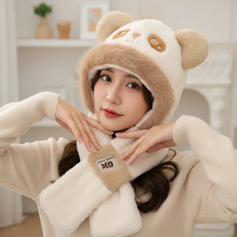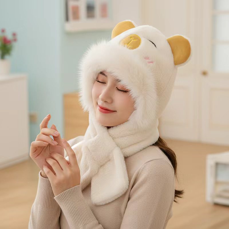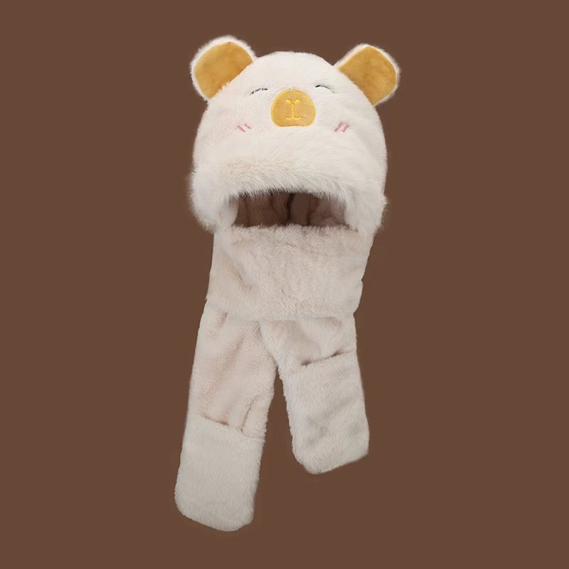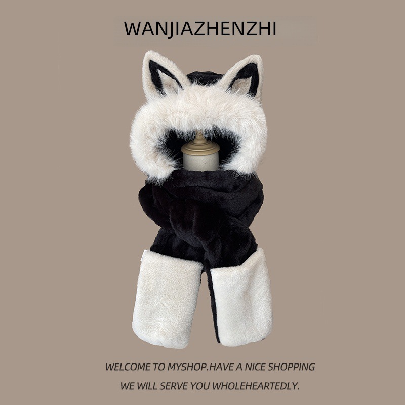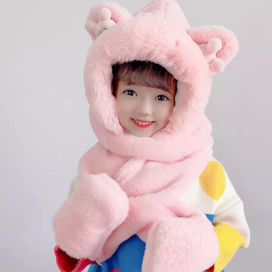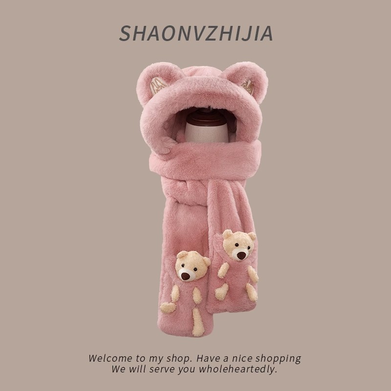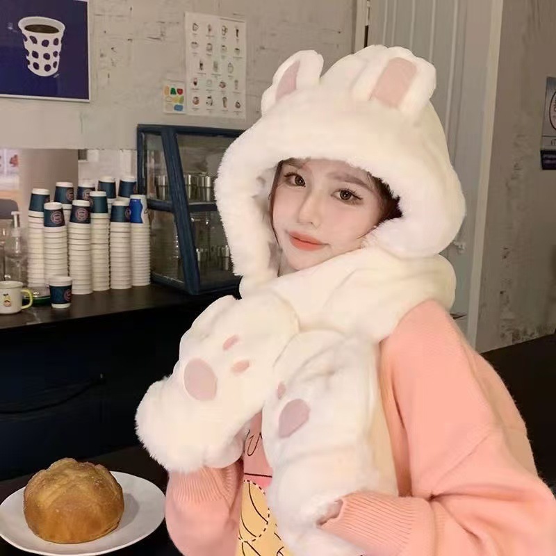 털모자, 스카프, 장갑 3종 세트, 다용도 여성용 가을 겨울 두꺼운 보온 방한 귀마개 후드