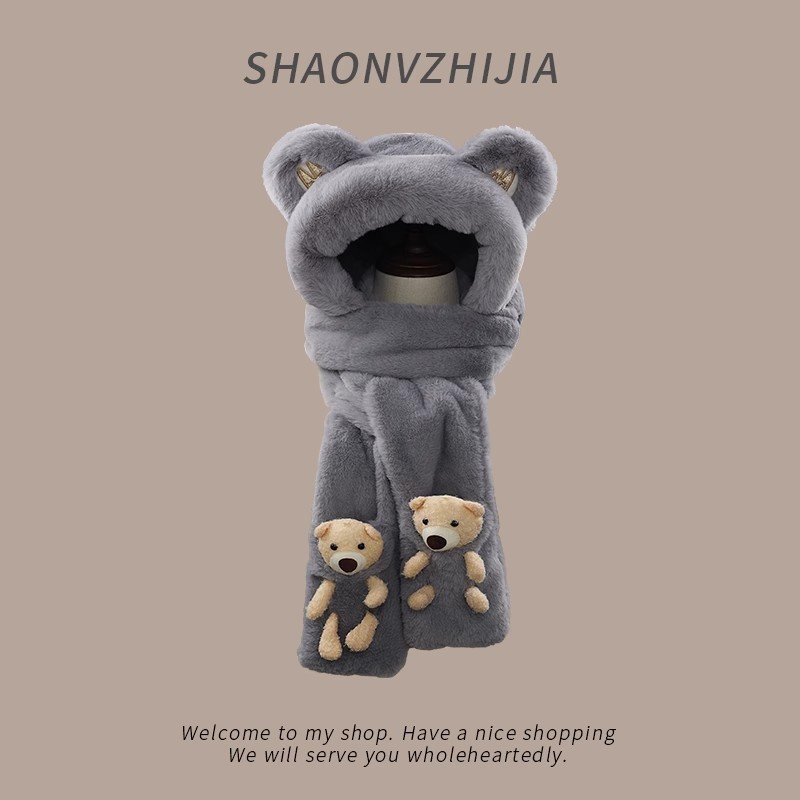 털모자, 스카프, 장갑 3종 세트, 다용도 여성용 가을 겨울 두꺼운 보온 방한 귀마개 후드스토어 가기