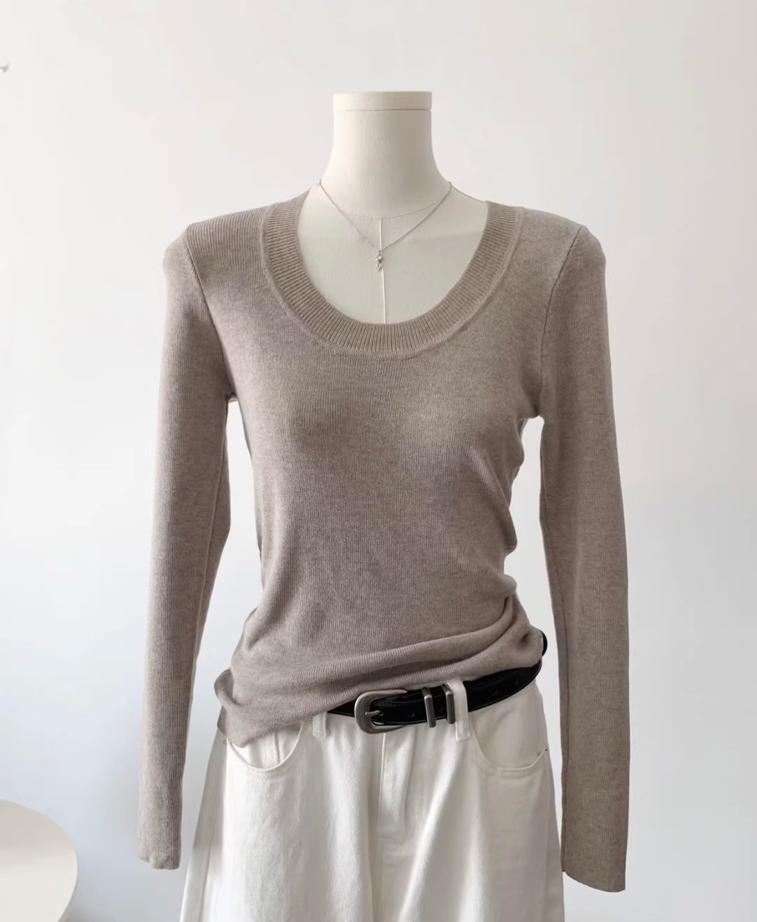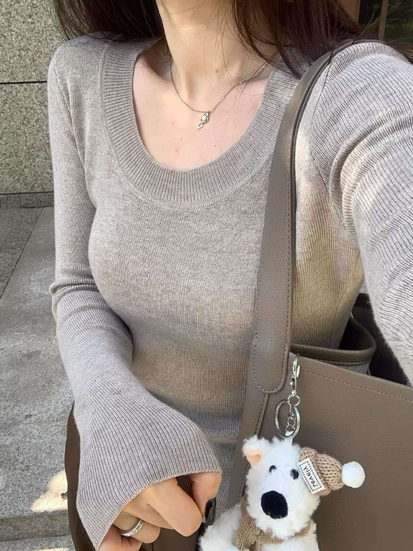 원피스 배송 U넥 니트 스웨터 봄 가을 겨울 슬림 핏 섹시 스타일 이너웨어 여성용 단색 기본 상의