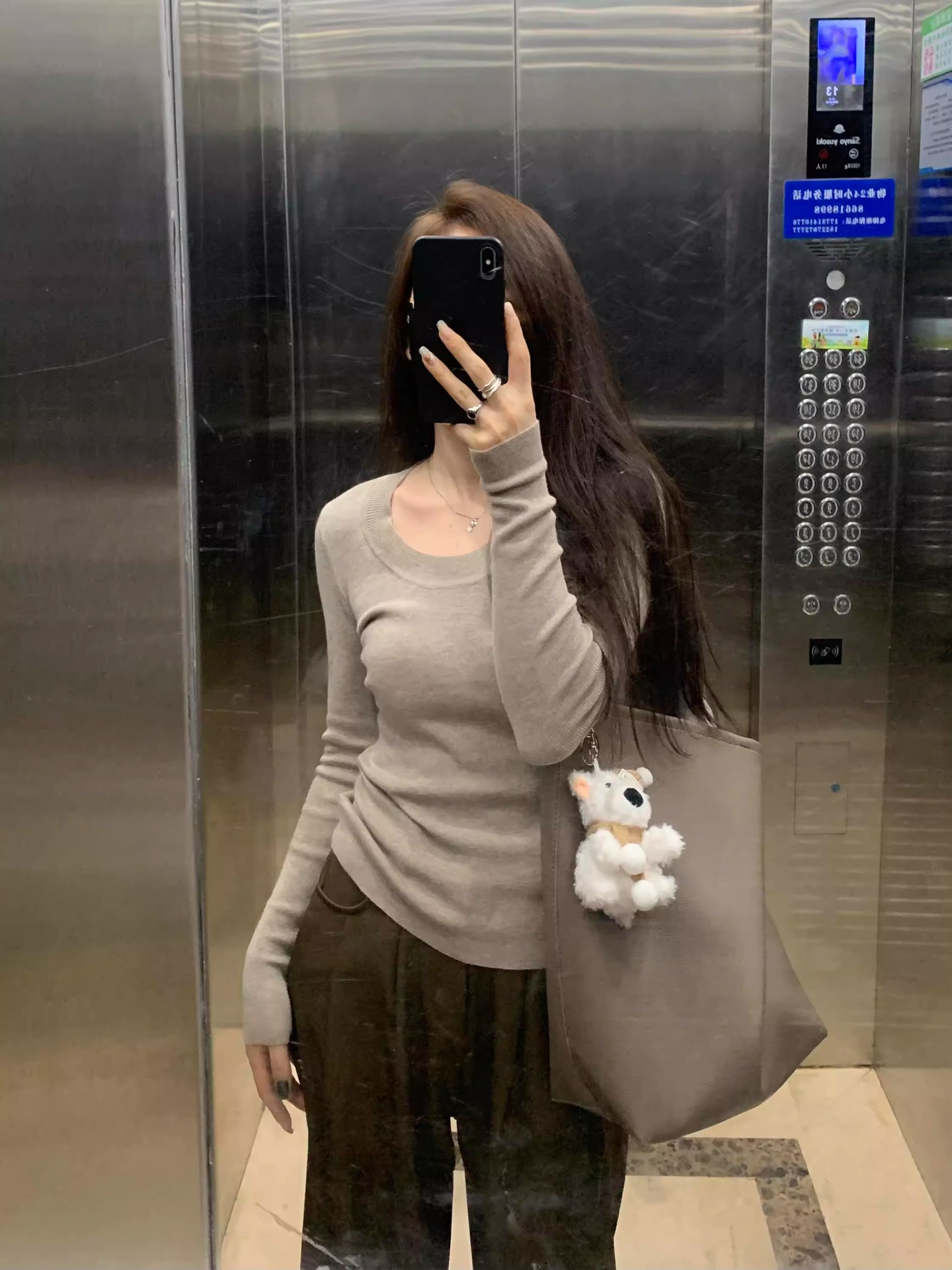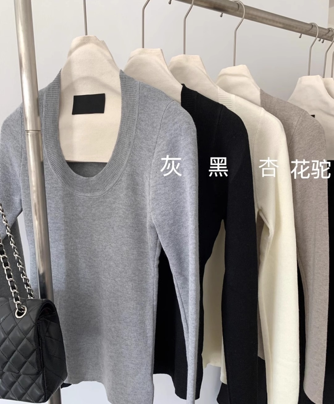 원피스 배송 U넥 니트 스웨터 봄 가을 겨울 슬림 핏 섹시 스타일 이너웨어 여성용 단색 기본 상의스토어 가기