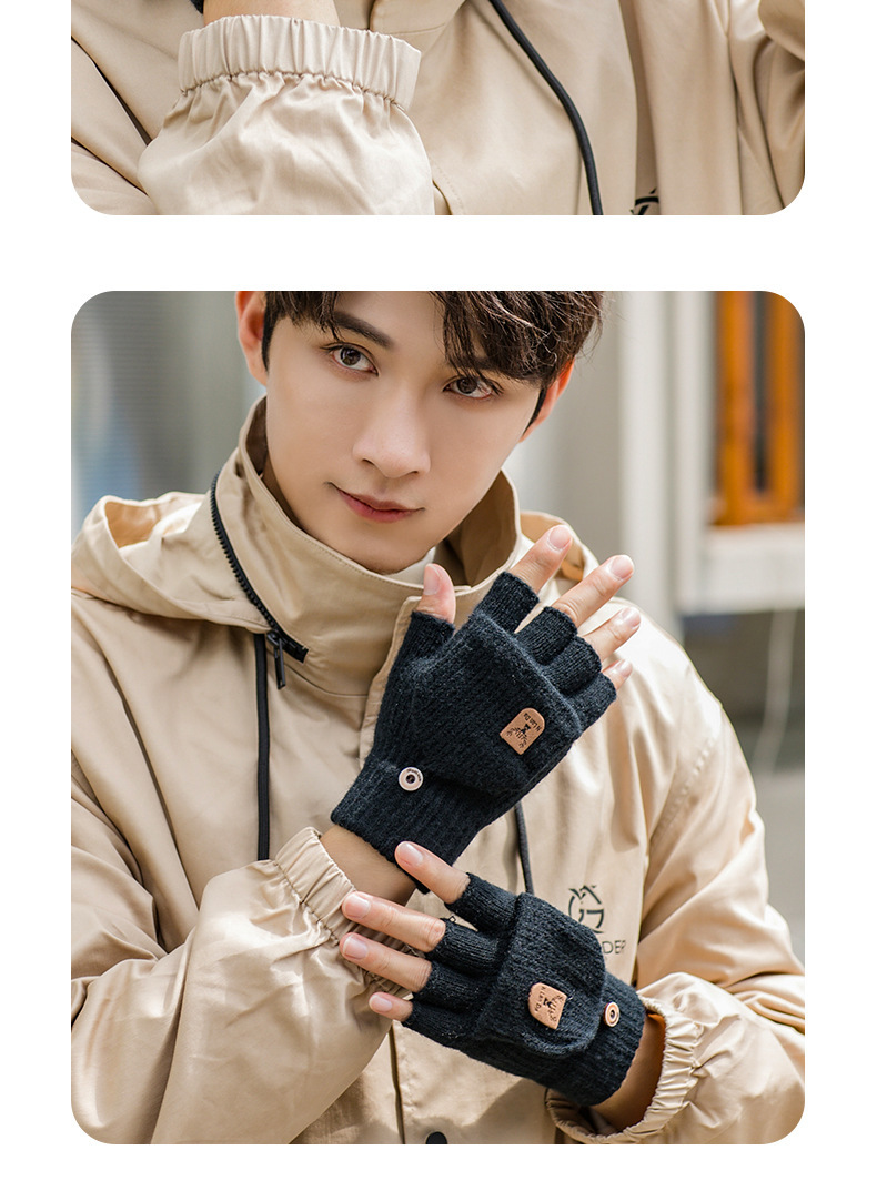 남성과 여성을위한 하프 핑거 플립 장갑 겨울 따뜻한 두꺼운 니트 하프 핑거 장갑 여학생 Leakage Finger in Writing