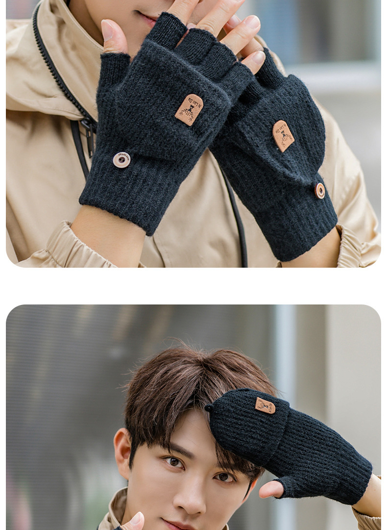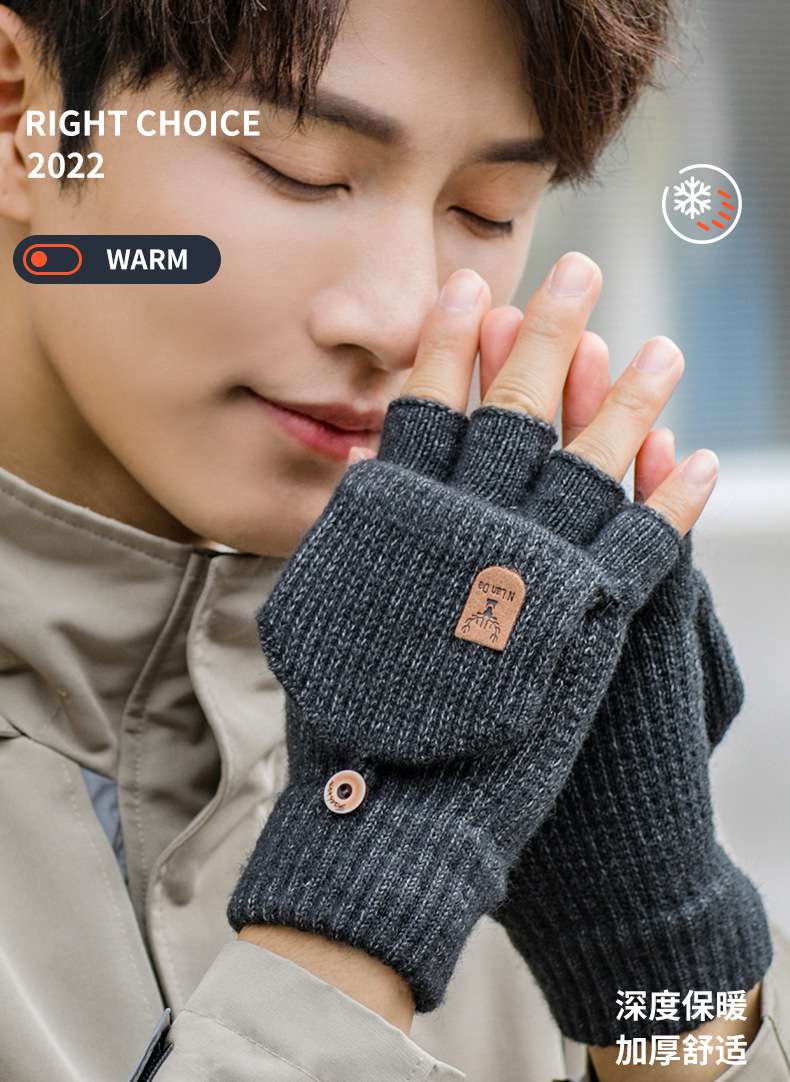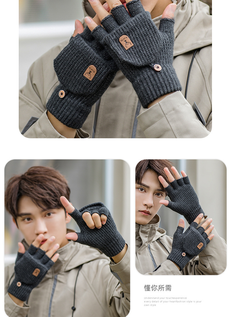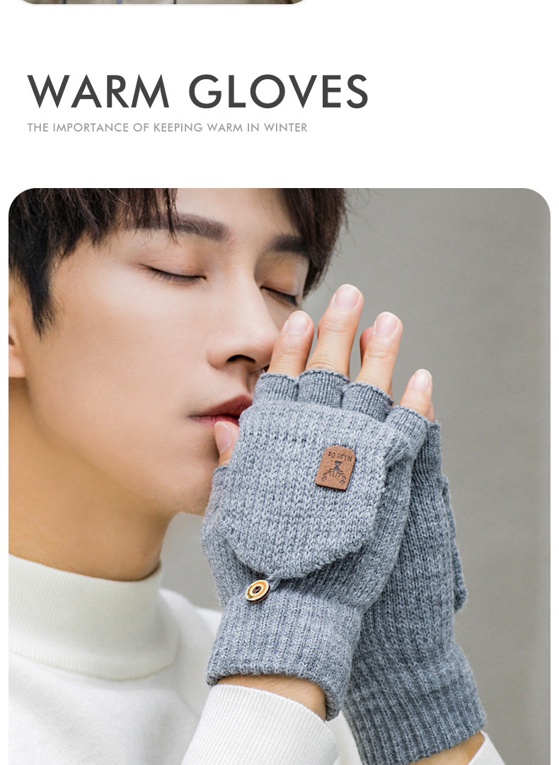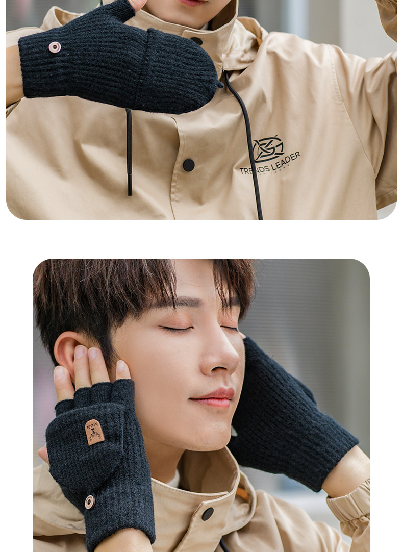 남성과 여성을위한 하프 핑거 플립 장갑 겨울 따뜻한 두꺼운 니트 하프 핑거 장갑 여학생 Leakage Finger in Writing스토어 가기