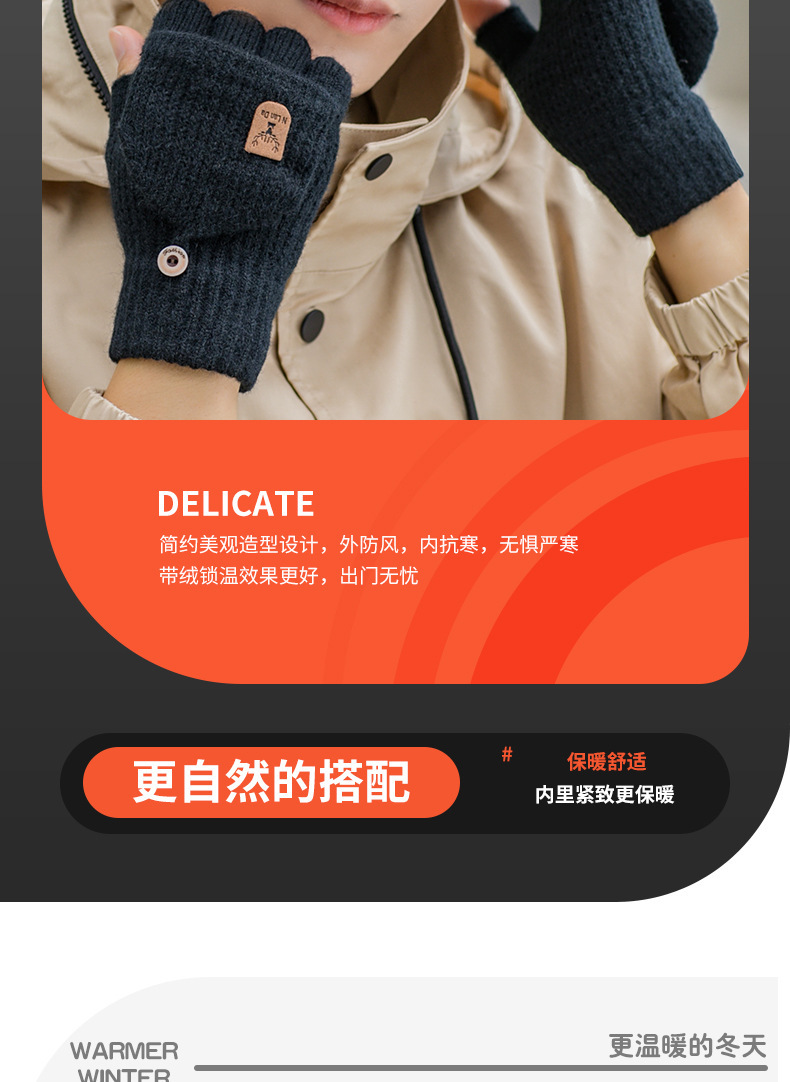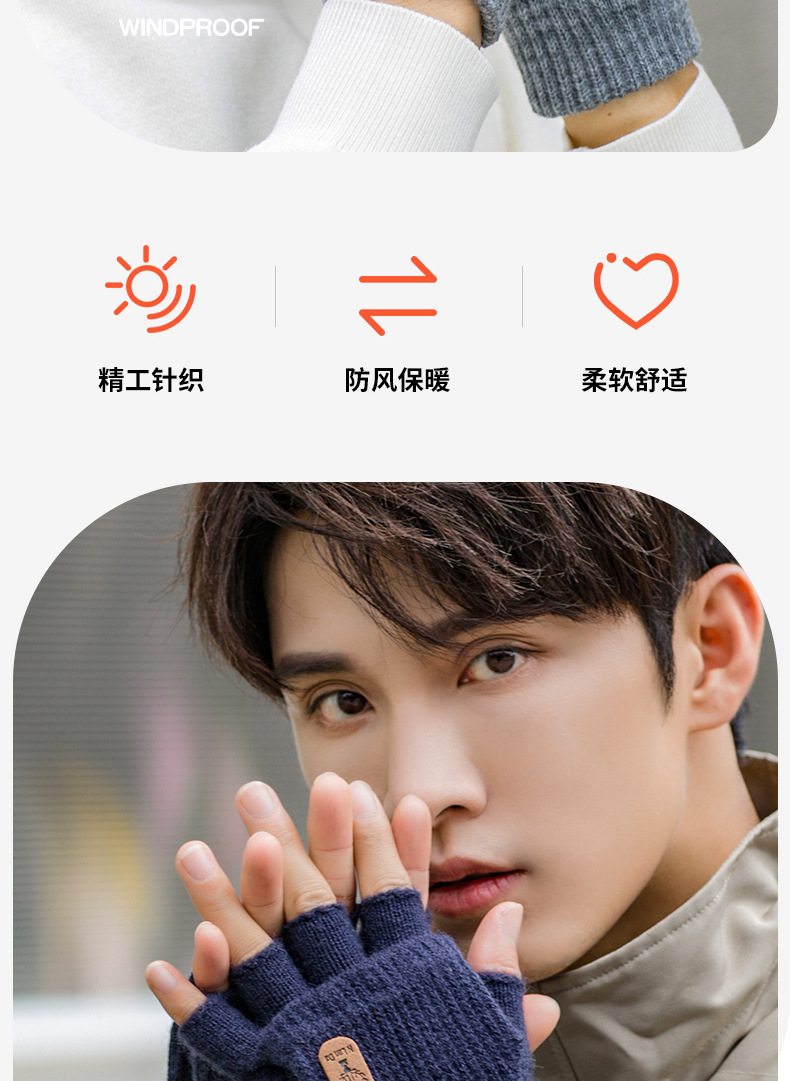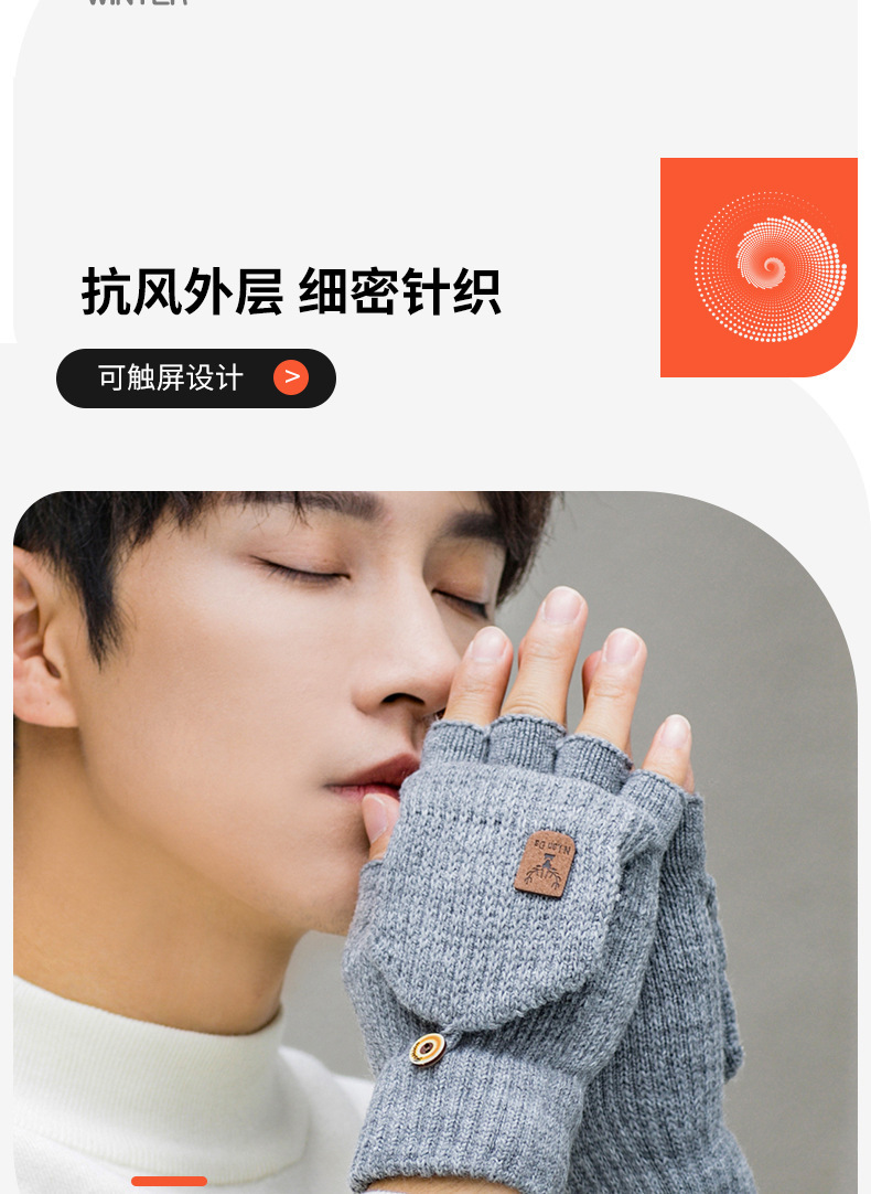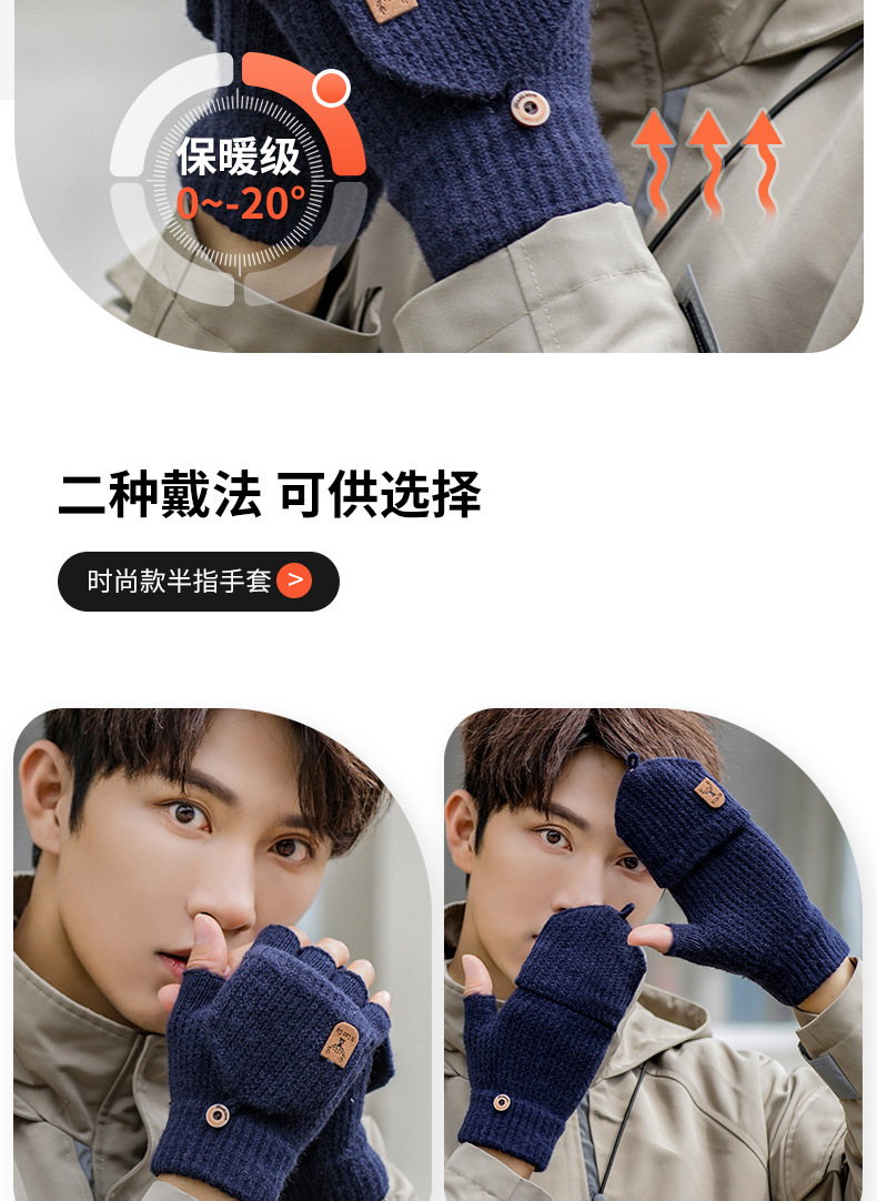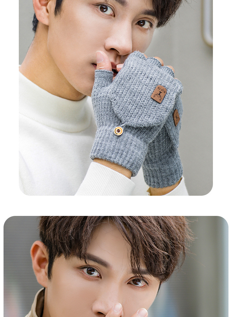 남성과 여성을위한 하프 핑거 플립 장갑 겨울 따뜻한 두꺼운 니트 하프 핑거 장갑 여학생 Leakage Finger in Writing스토어 가기