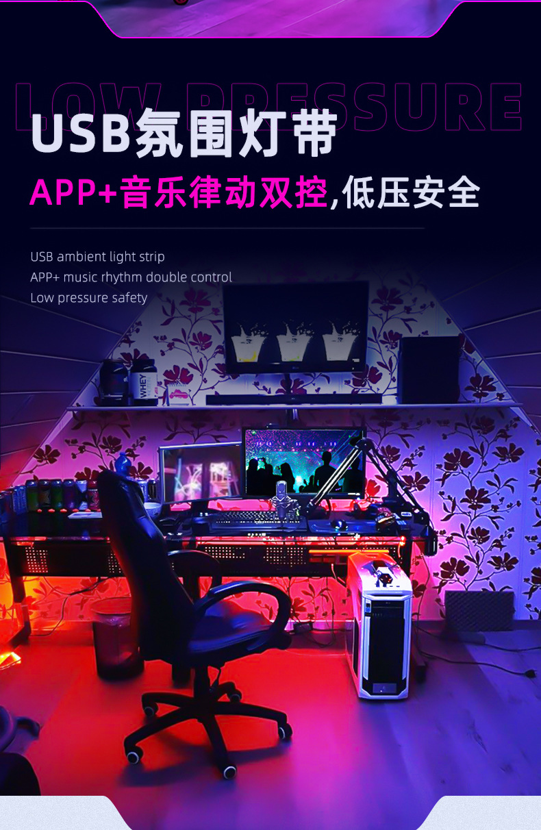 USB 분위기와 RGB 마법의 빛 지능형 5V 저전압 자기 접착 led 라이트 바 전자 스포츠 침실 장식 구멍 보드