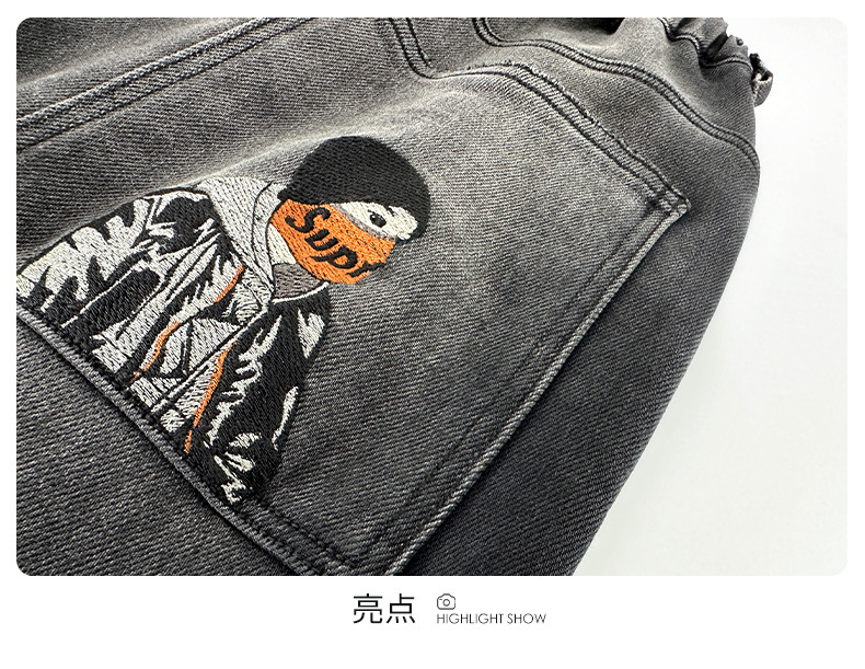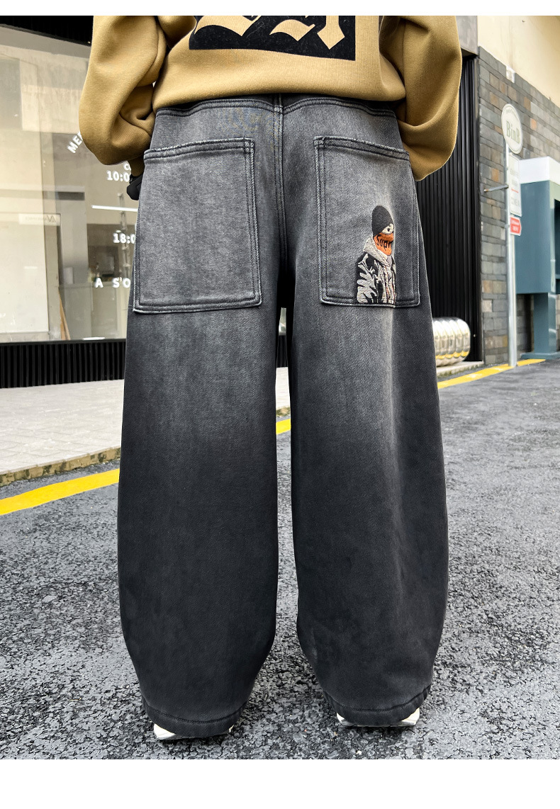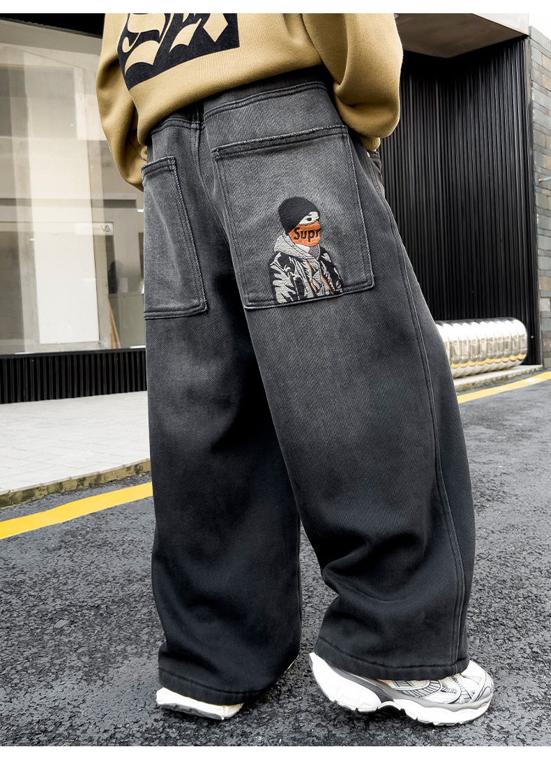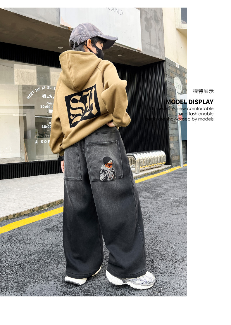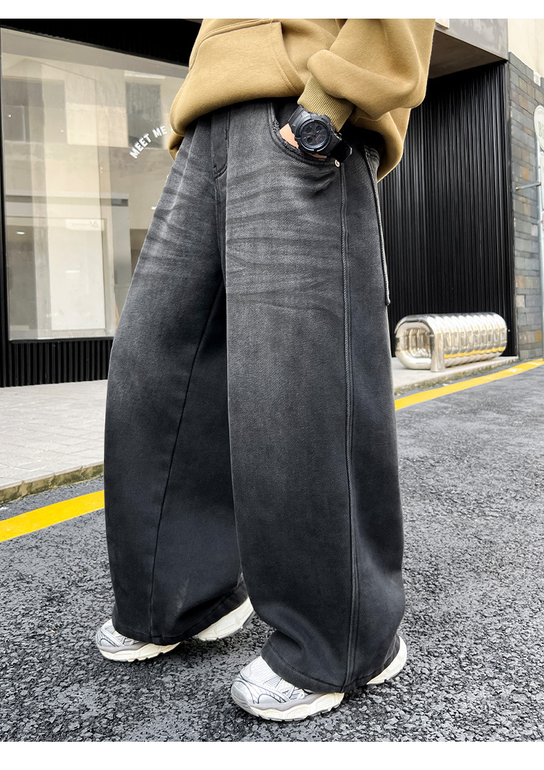 Z1348 원바디 벨벳 초기 양 소년 겨울 긴 바지 기모 중년 및 대형 어린이를위한 두꺼운 유행 느슨한 청바지스토어 가기