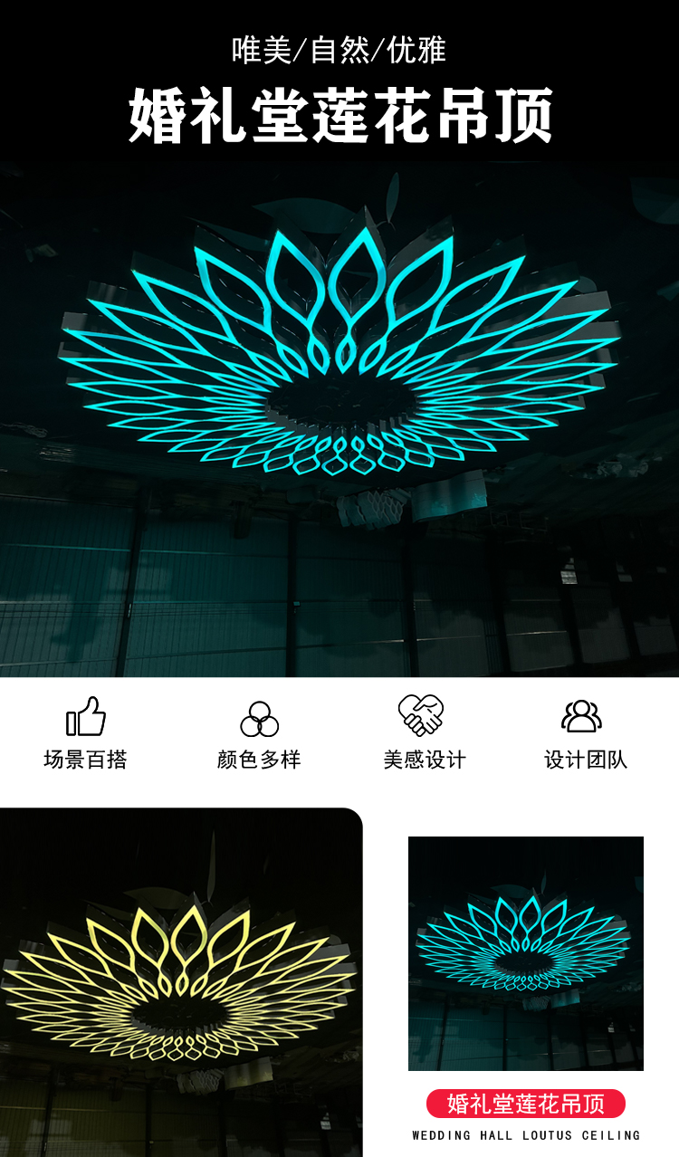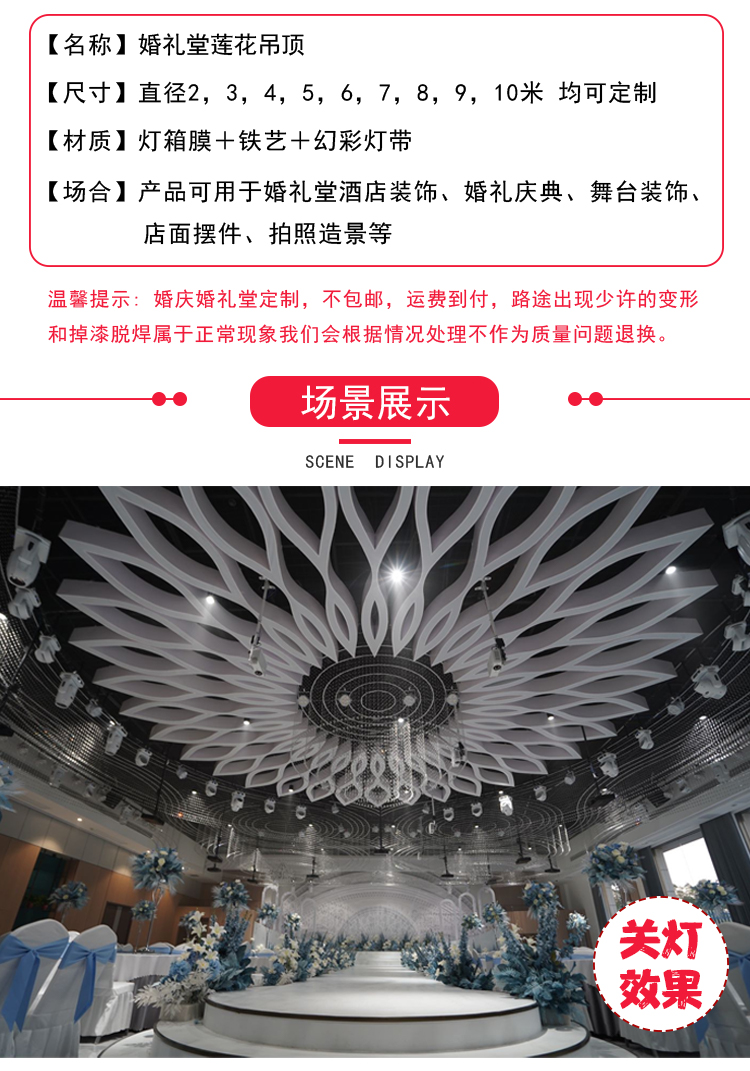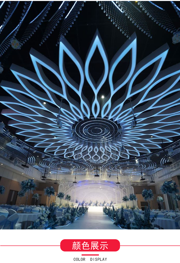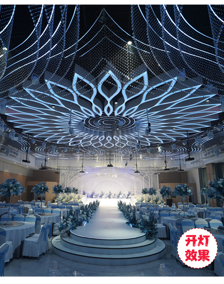 新款婚庆道具莲花吊顶铁艺灯箱酒店婚礼堂宴会厅舞台装饰造型