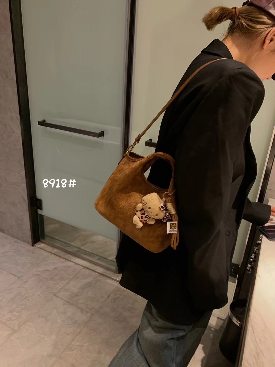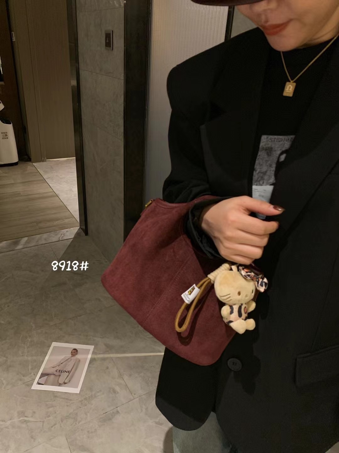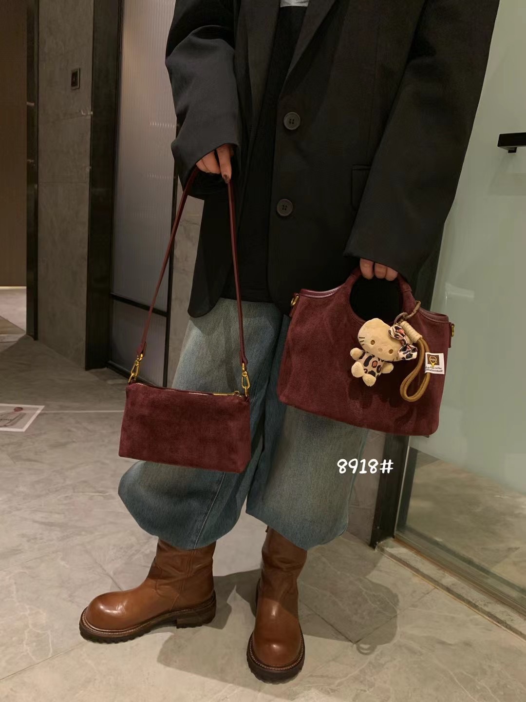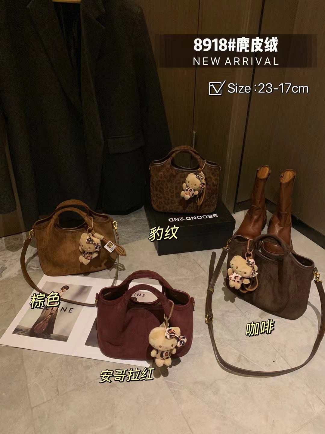 하이 엔드 레트로 정품 가죽 스웨이드 휴대용 버킷 가방 여성의 2024 가을과 겨울 새로운 패션 어깨 크로스 바디 백스토어 가기