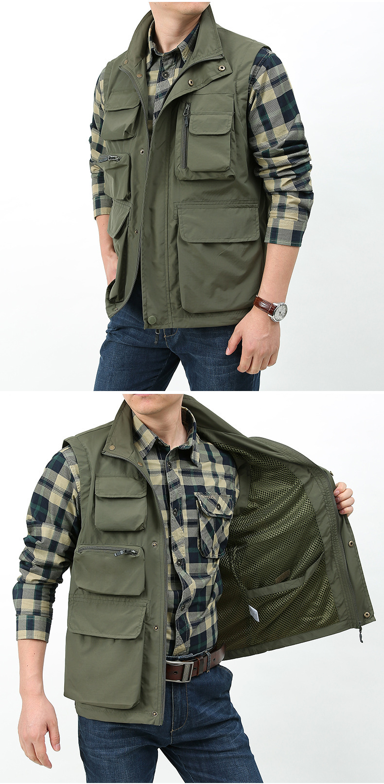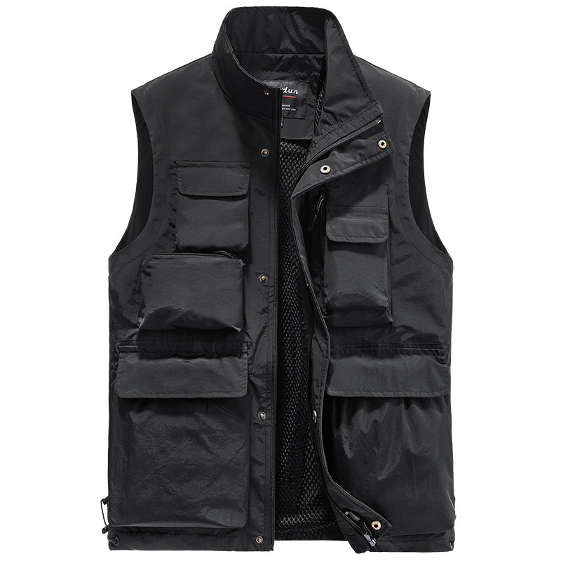 외국 무역 그룹 구매 야외 조끼 남자 낚시 사진 작가 느슨한 캐주얼 조끼 툴링 멀티 포켓 전술 재킷
