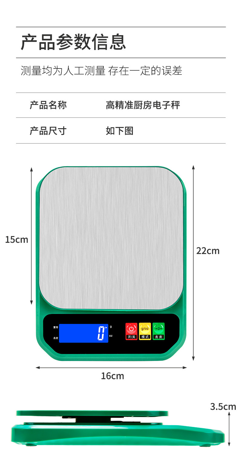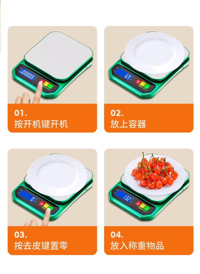 공장 직접 고정밀 베이킹 주방 스케일 전자 스케일 스테인레스 스틸 그램 스케일 10kg 가정용 주방 스케일 방수