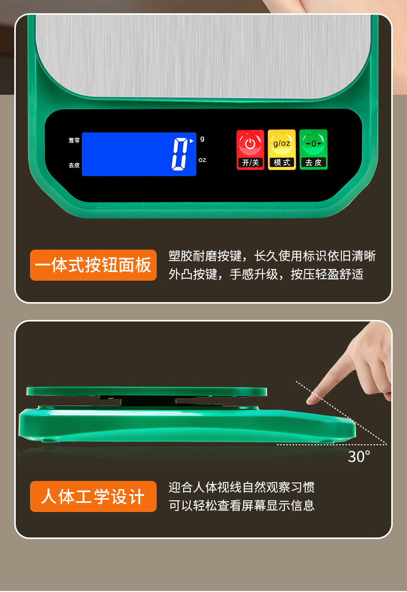 공장 직접 고정밀 베이킹 주방 스케일 전자 스케일 스테인레스 스틸 그램 스케일 10kg 가정용 주방 스케일 방수스토어 가기