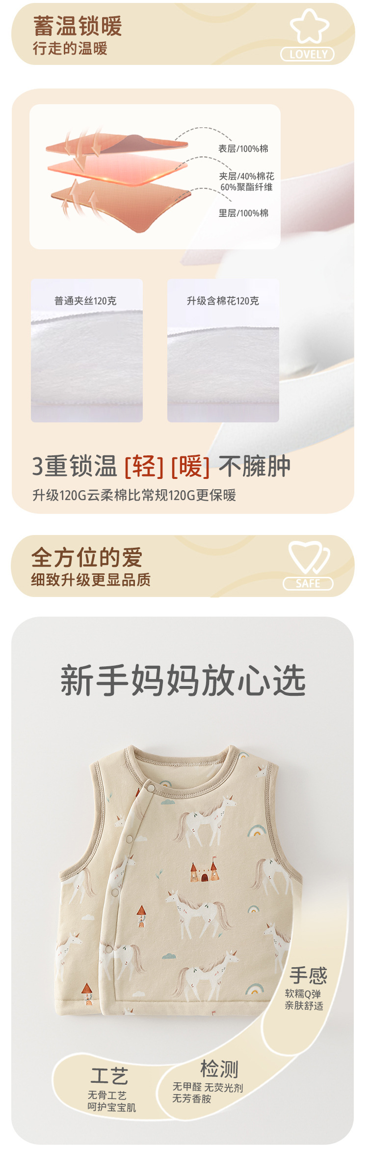 남자와 여자를위한 아기 조끼 120g 면화 따뜻한 조끼 신생아는 가을과 겨울을위한 조끼