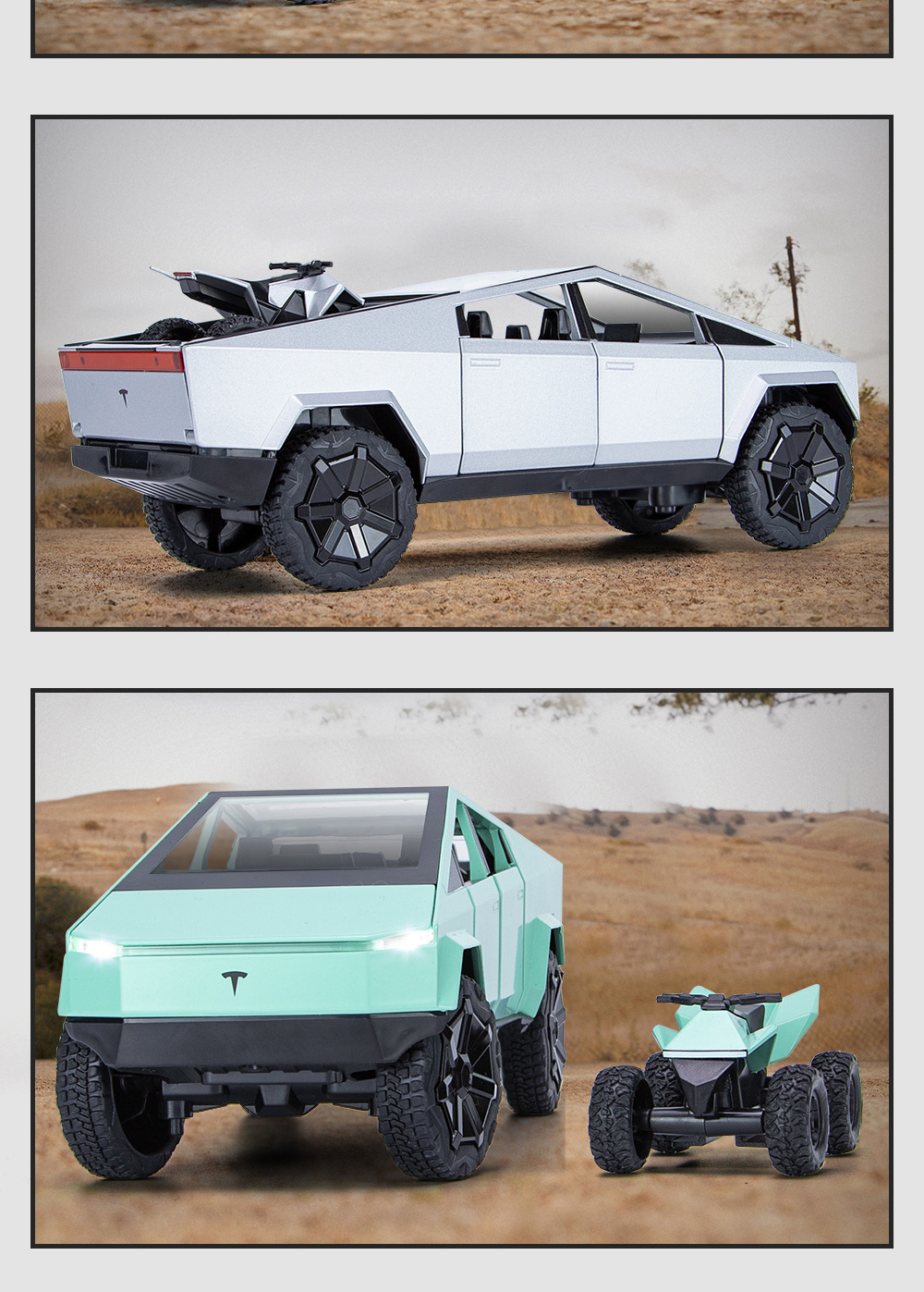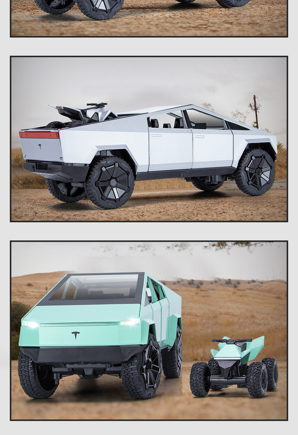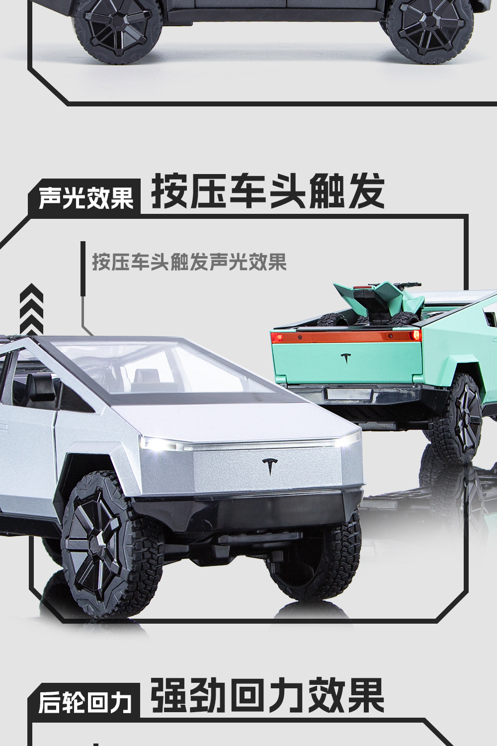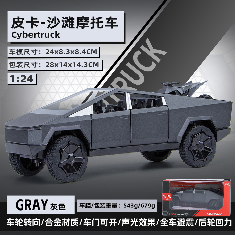 새로운 Howdy 1:24 Tesla 픽업 ATV 합금 모델 도어 오프닝 사운드 및 라이트 백 포스 충격 방지 스티어링 오토바이스토어 가기